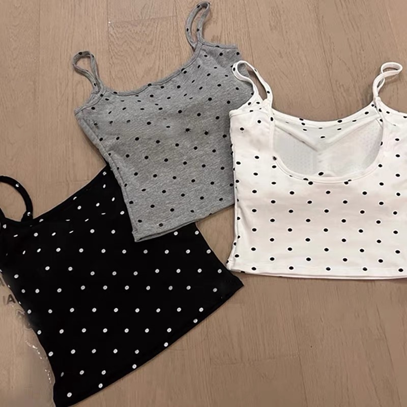 新款波点大U美背吊带内衣 一体式固定胸垫辣妹短款打底抹胸上衣