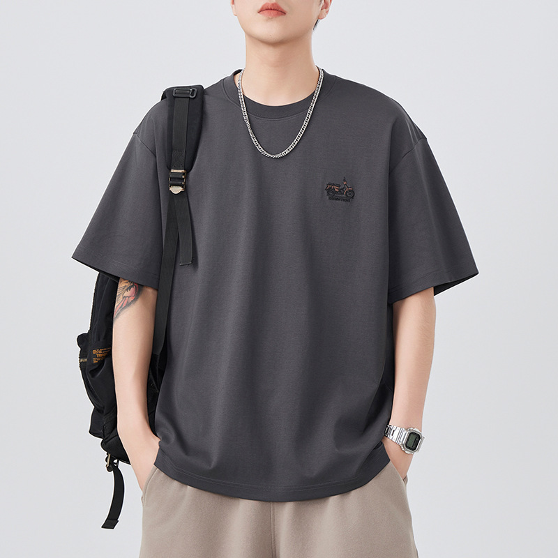 2025夏季新款短袖T恤男简约刺绣百搭五分袖体恤衫宽松潮流弹力上