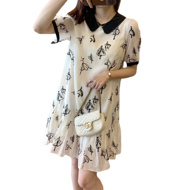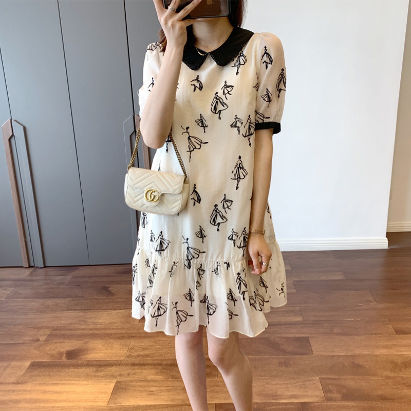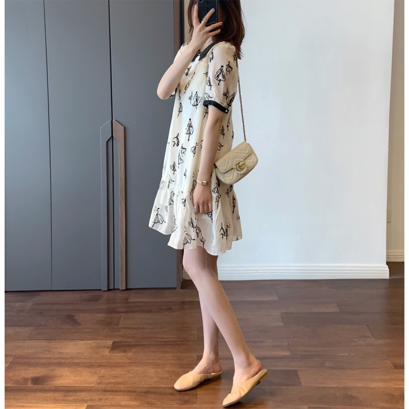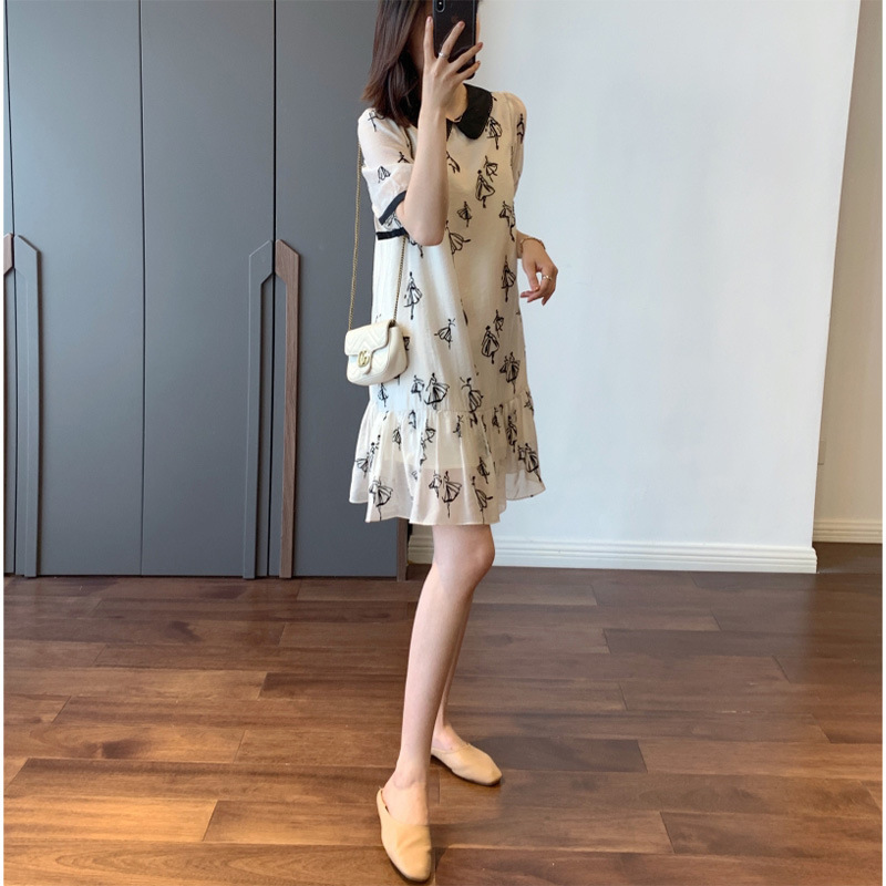 夏季新款气质冷淡风法式复古遮肚小个子裙子显瘦娃娃领连衣裙