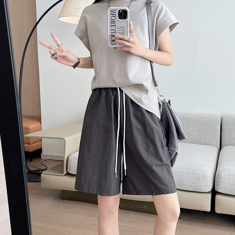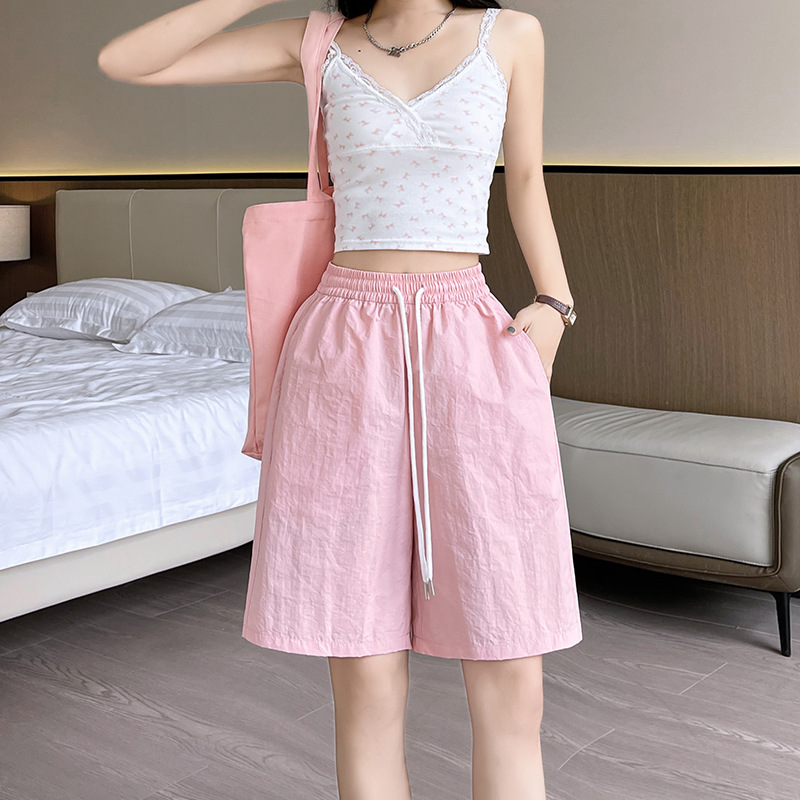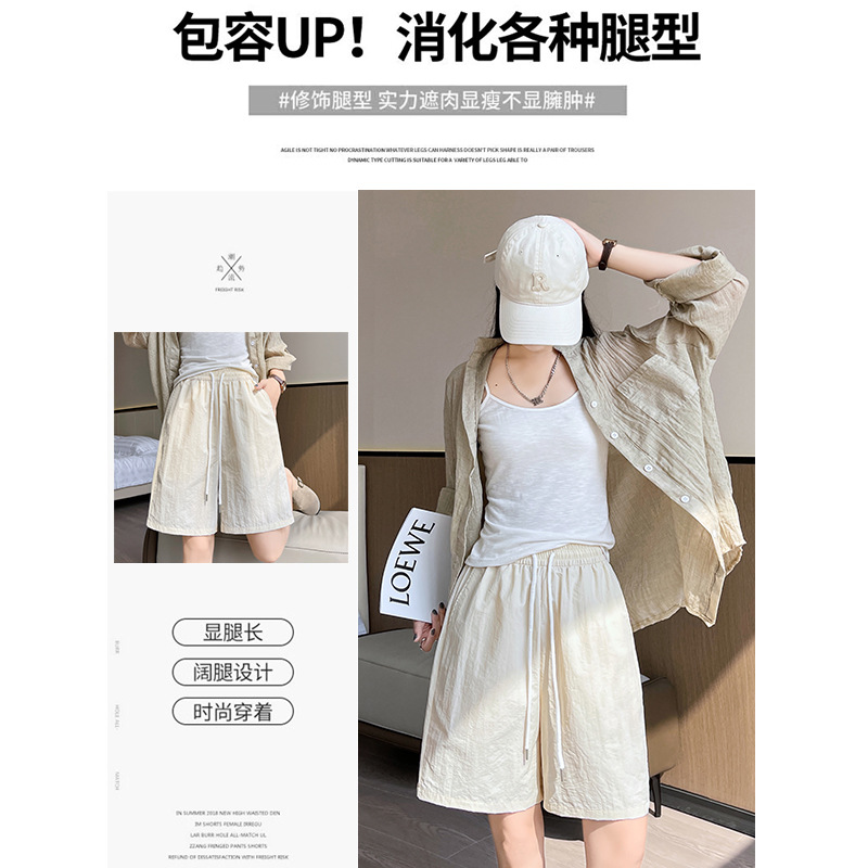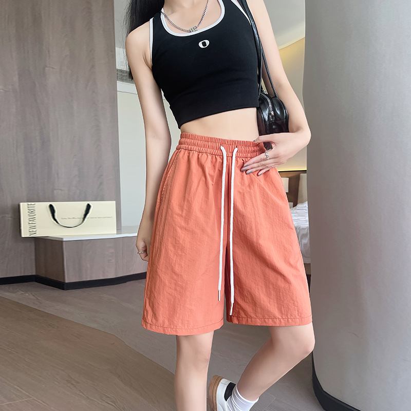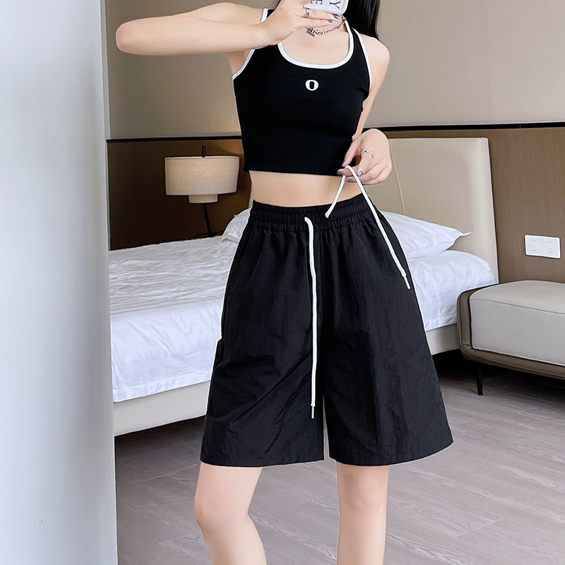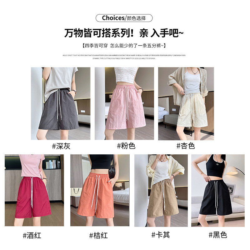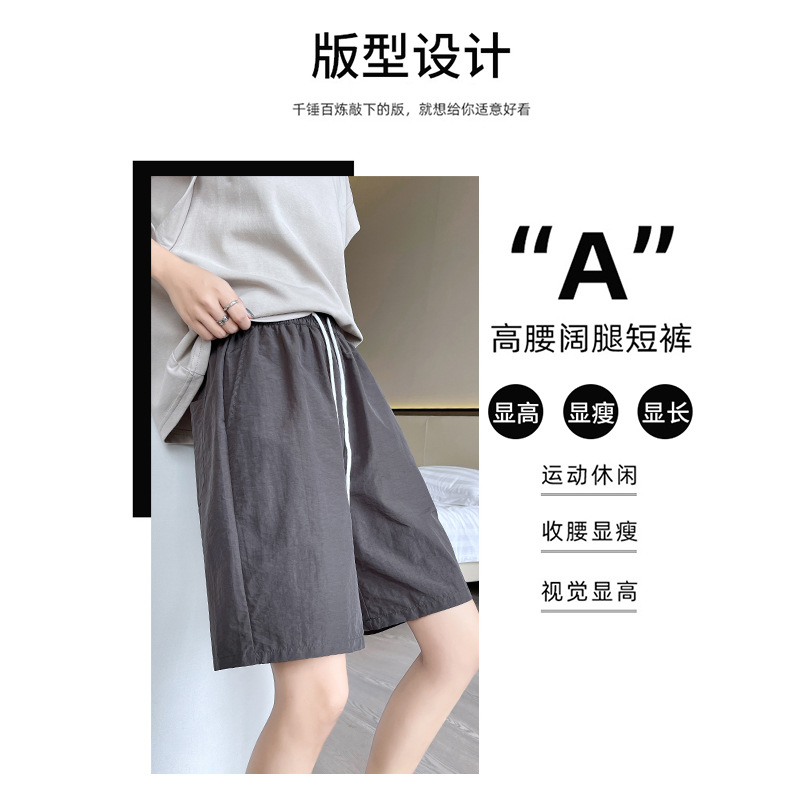 锦纶速干男女同款短裤女夏薄款显瘦高腰直筒裤阔腿运动五分裤