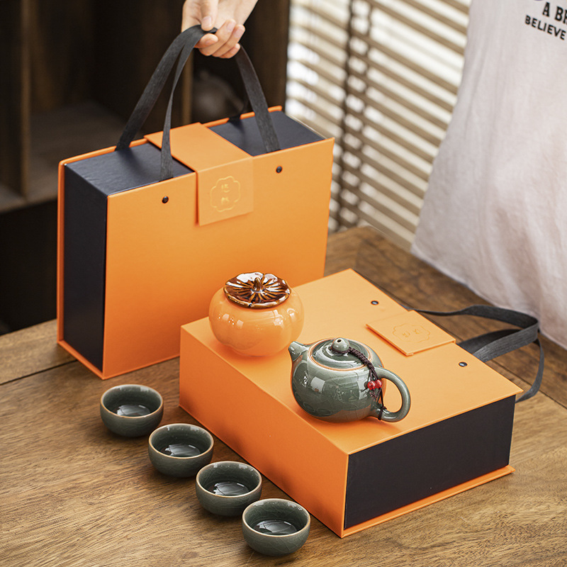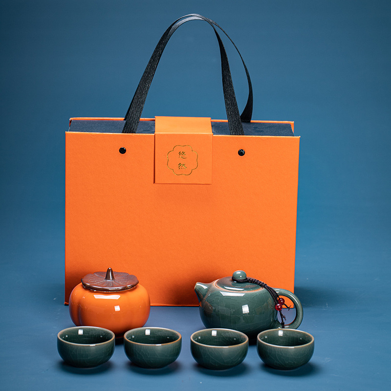 定窑功夫茶具一壶四杯茶叶罐小礼品高档礼盒装陶瓷轻奢商务伴手礼
