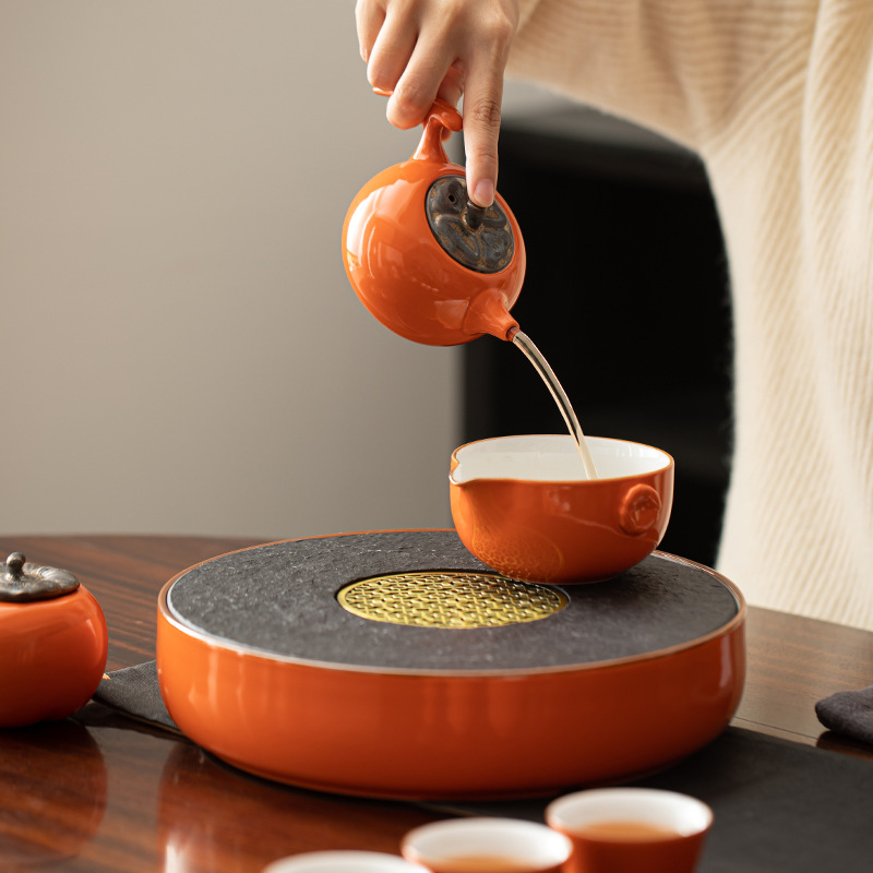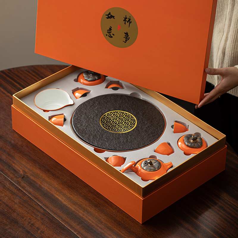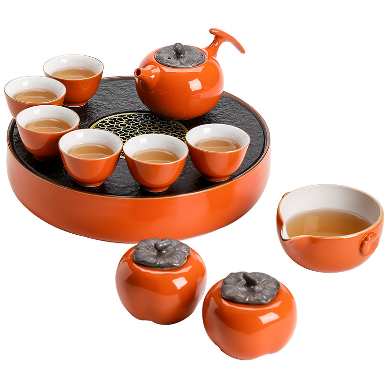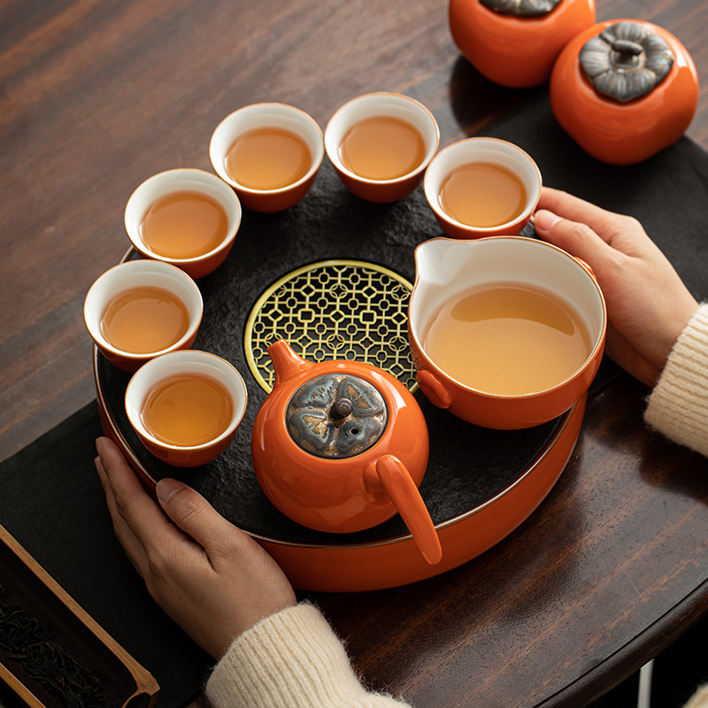 柿子茶具套装 柿事如意轻奢高档功夫泡茶小型茶盘茶壶茶杯礼盒装
