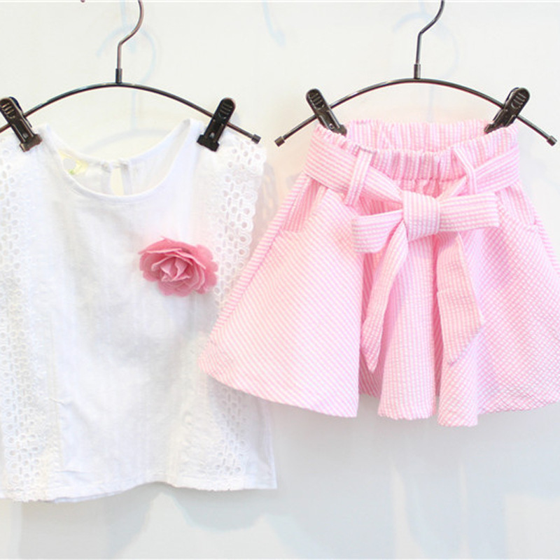 夏季童装2019新款韩版中大童短袖短裤两件套套装女送胸花