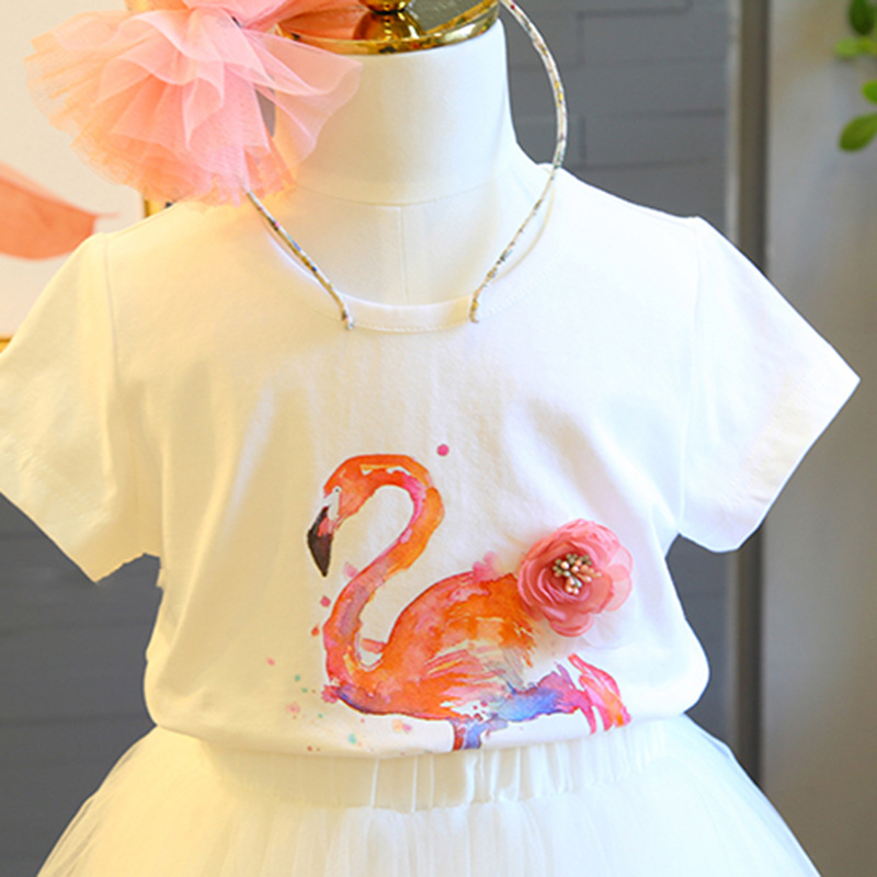 韩版儿童套装女童夏装卡通短袖中小童T恤纱裙两件套