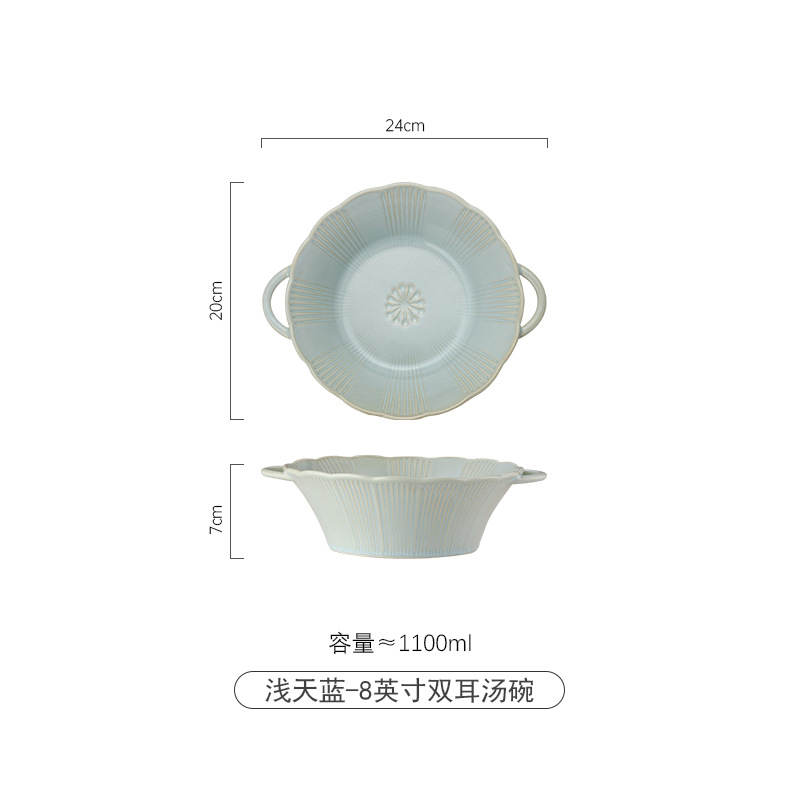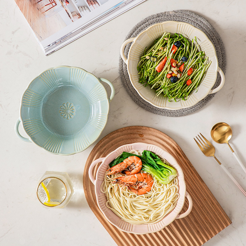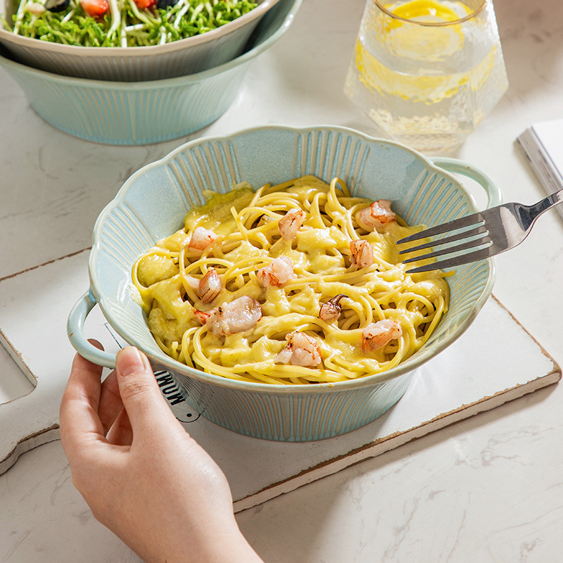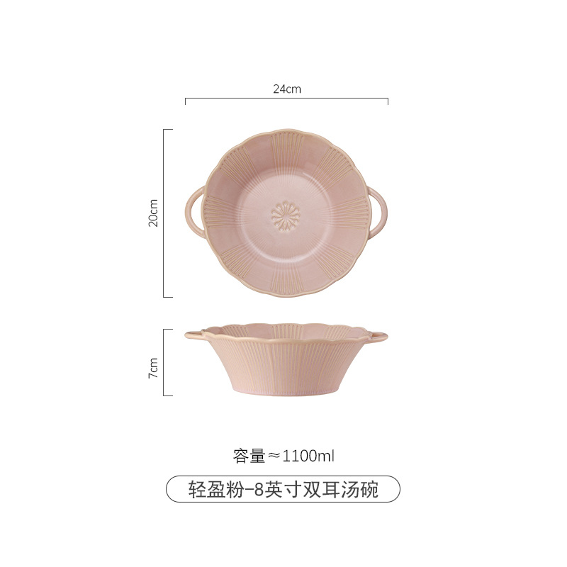 窑变釉双耳碗日式樱花陶瓷餐具家用饭碗沙拉碗汤碗欧式釉下彩面碗
