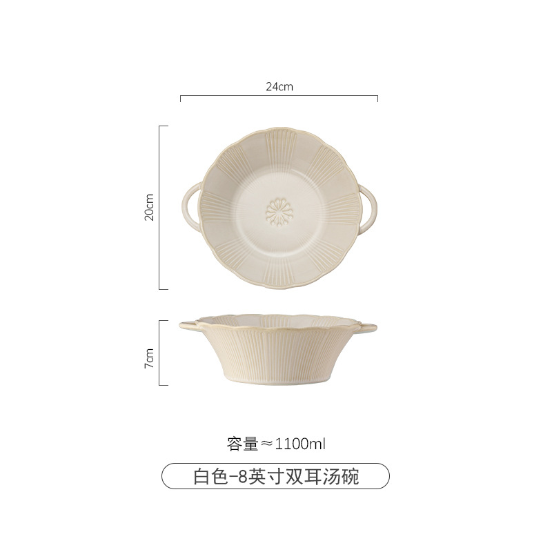 双耳浮雕碗窑变白色