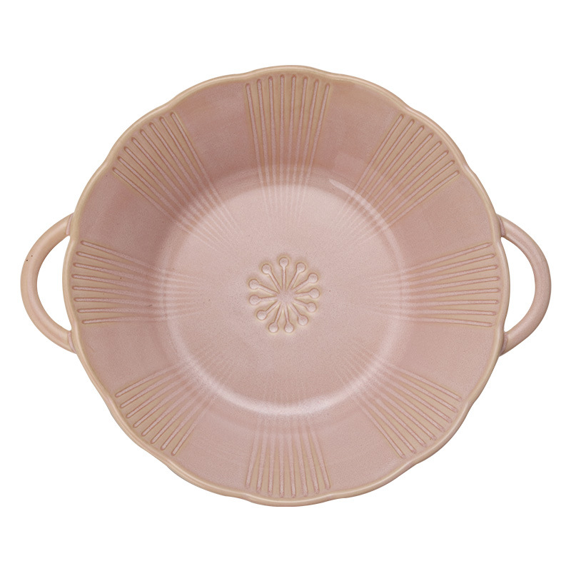 双耳浮雕碗窑变粉色