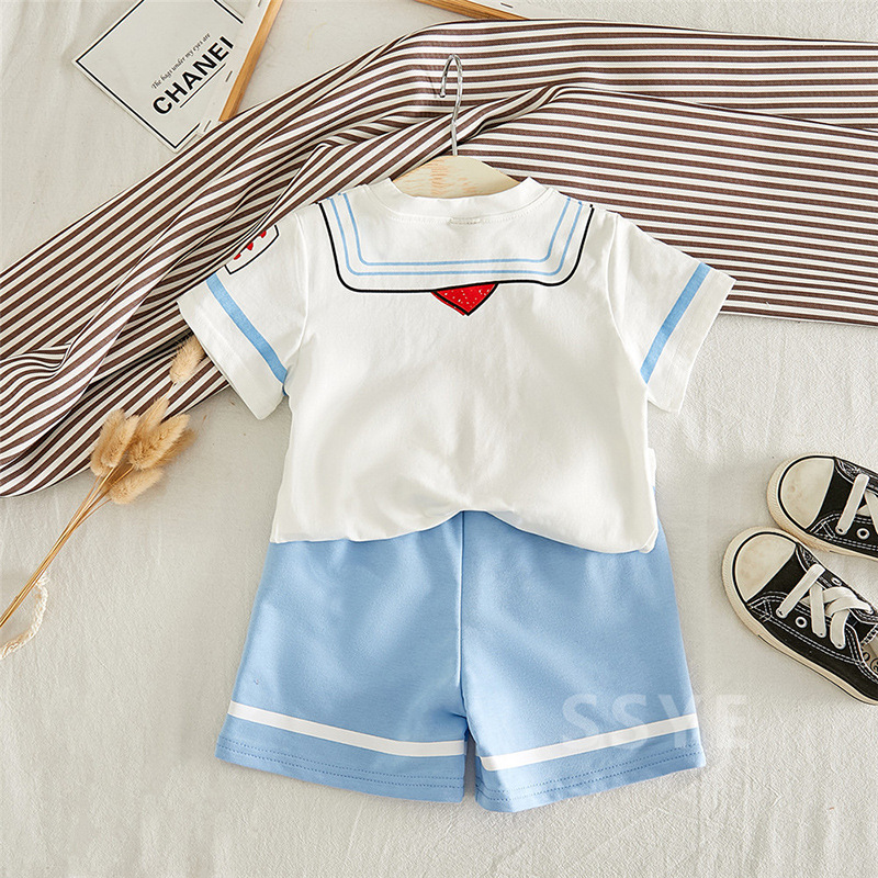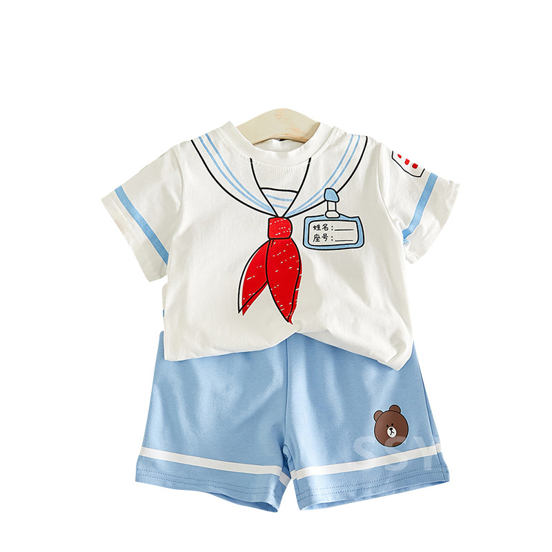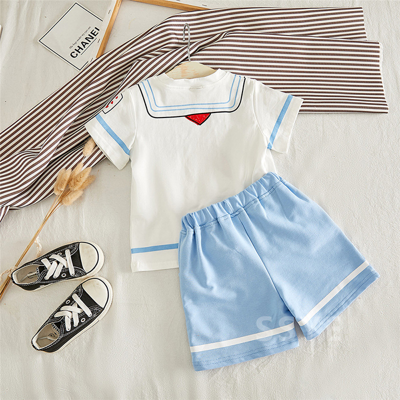 韩版中小童卡通两件套2019夏款童装男女童短裤套装