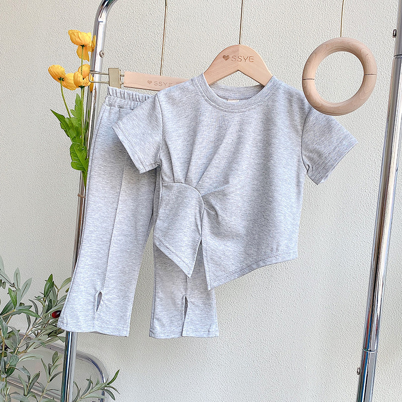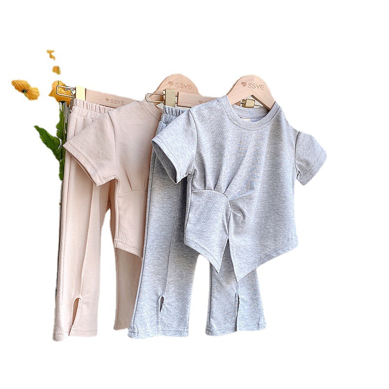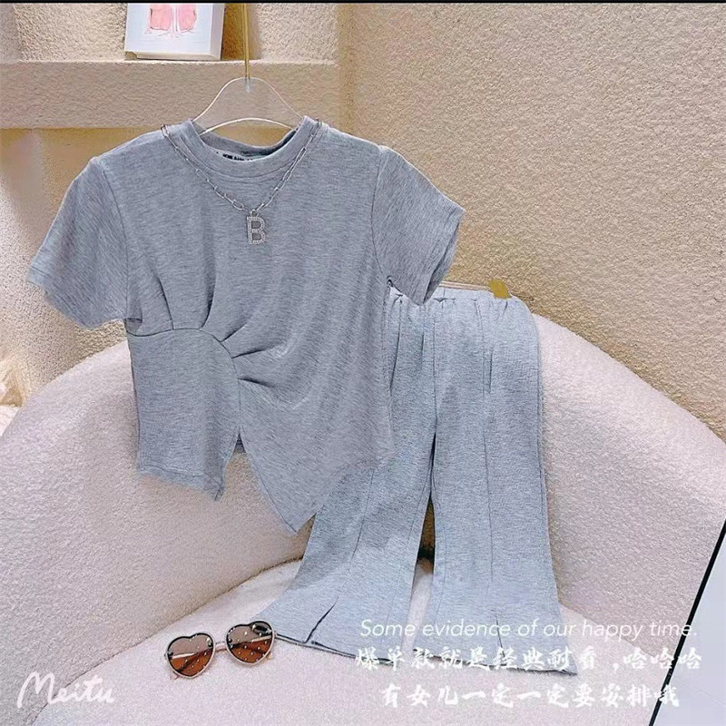 夏季新款儿童套装女童不规则短袖T恤上衣+休闲长裤两件套1138
