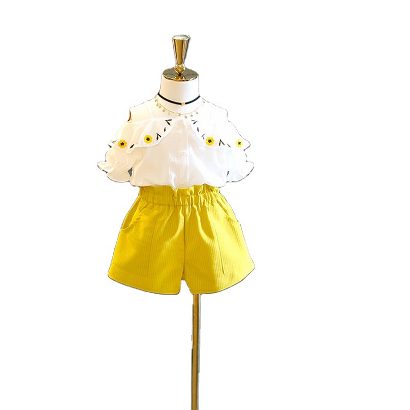 女童套装清新吊带上衣加短裤夏装新款外贸童装一件代发3-8岁