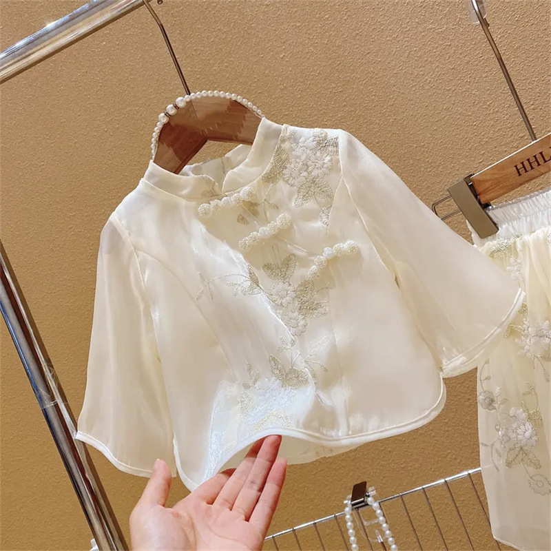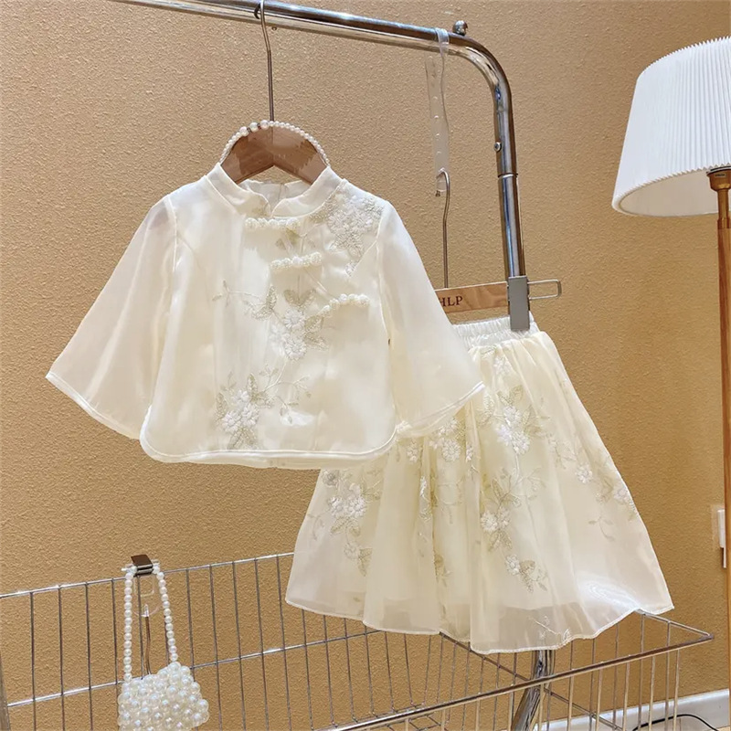 女童洋气套装夏装女宝宝时尚中国风上衣+裙子汉服两件套1175