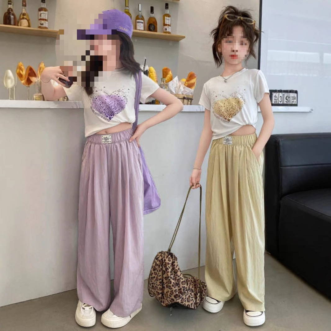 女童夏装阔腿裤套装2025新款中大童韩版洋气时髦卡通运动两件套潮
