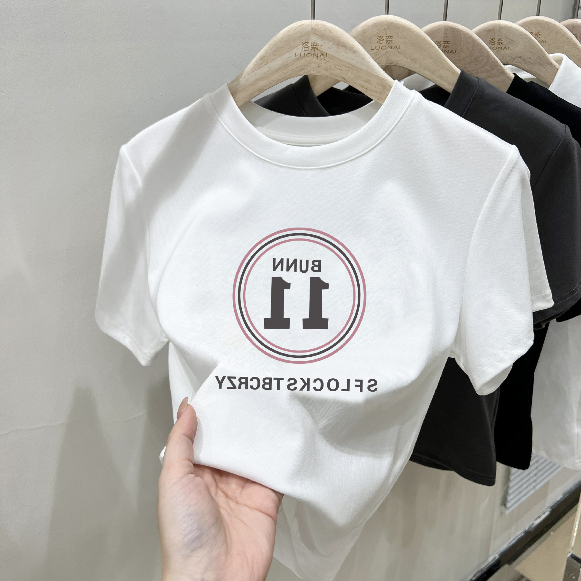落肩100%纯棉短袖t恤女时尚百搭减龄显瘦打底上衣打底衫春夏季ins