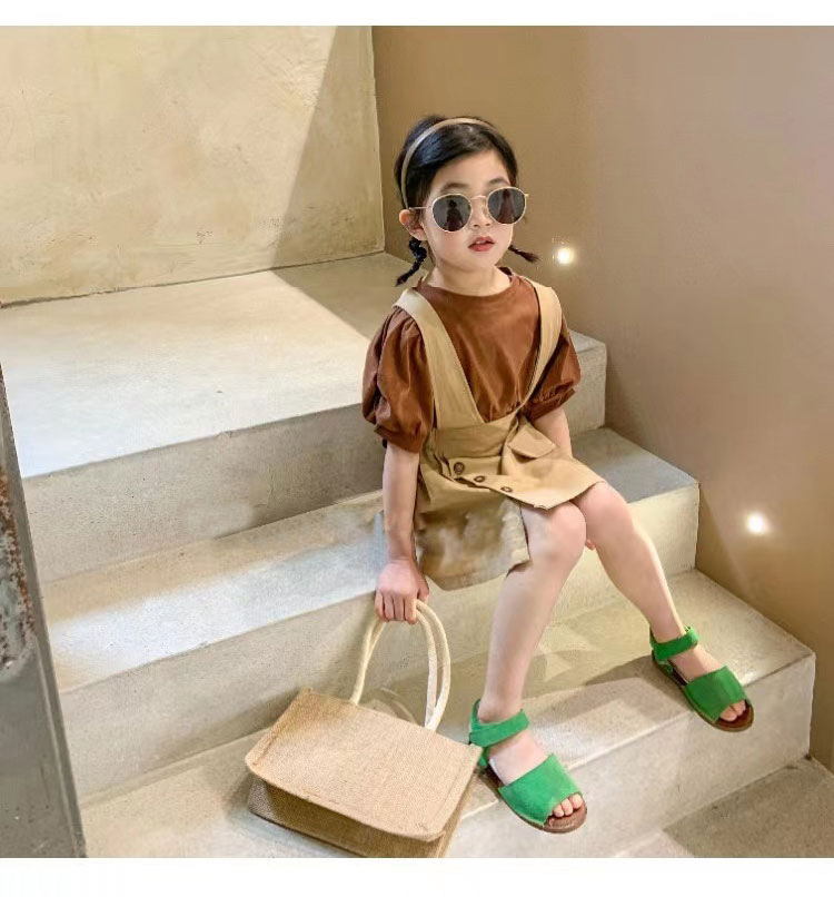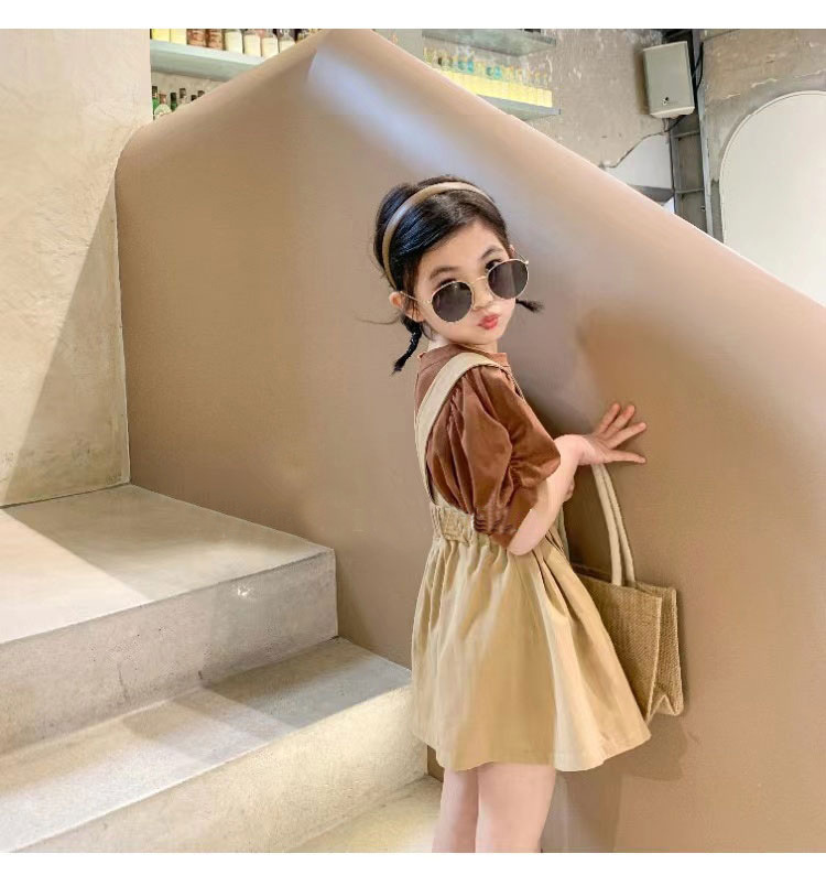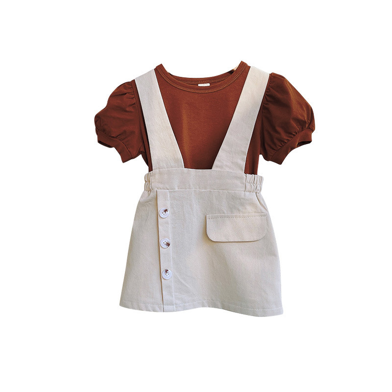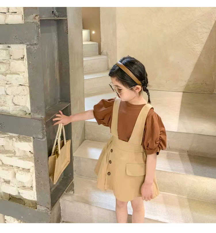 女童23夏季新款套装网红女宝韩版泡泡袖T恤背带裙短裙两件套1169