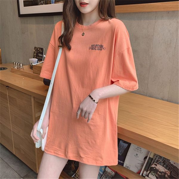 短袖t恤女夏季新款韩版中长款宽松衣服女装ins潮棉半袖上衣