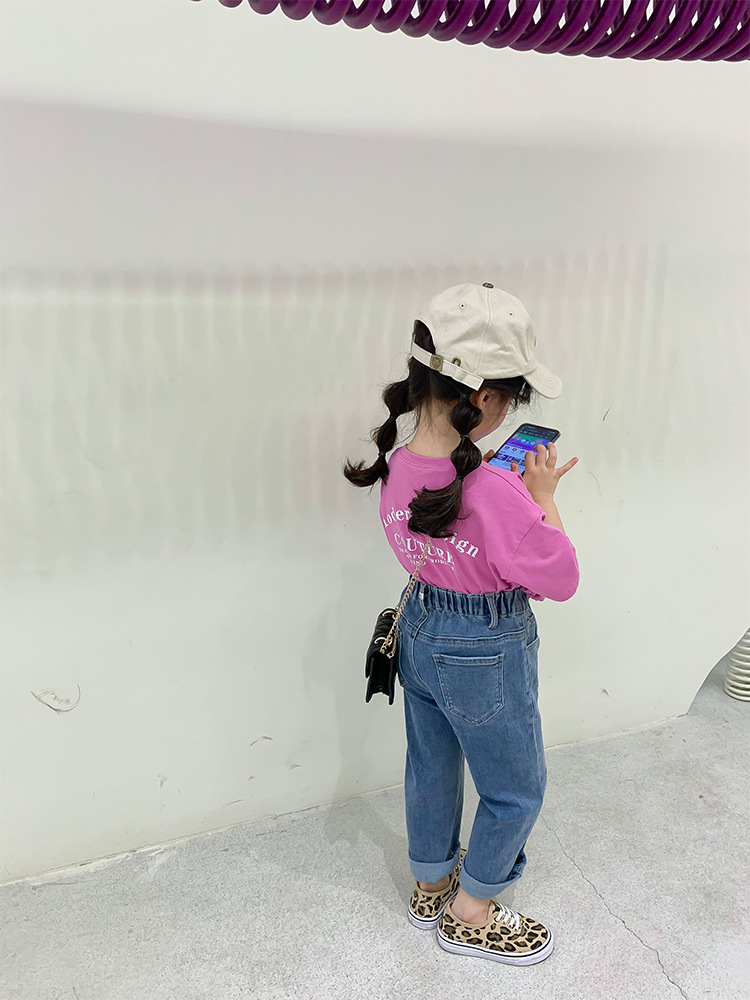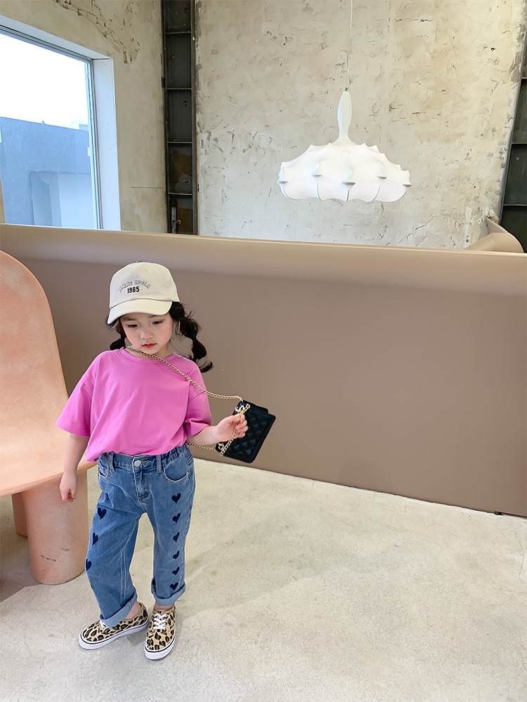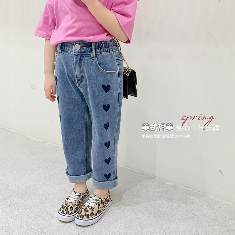 女童韩版洋气爱心牛仔裤薄春夏装新款儿童休闲百搭直筒裤755