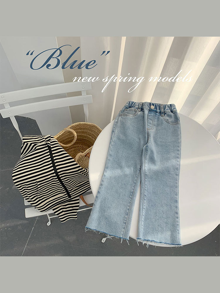 女童韩版网红喇叭牛仔裤宝宝春装新款儿童复古休闲长裤子753