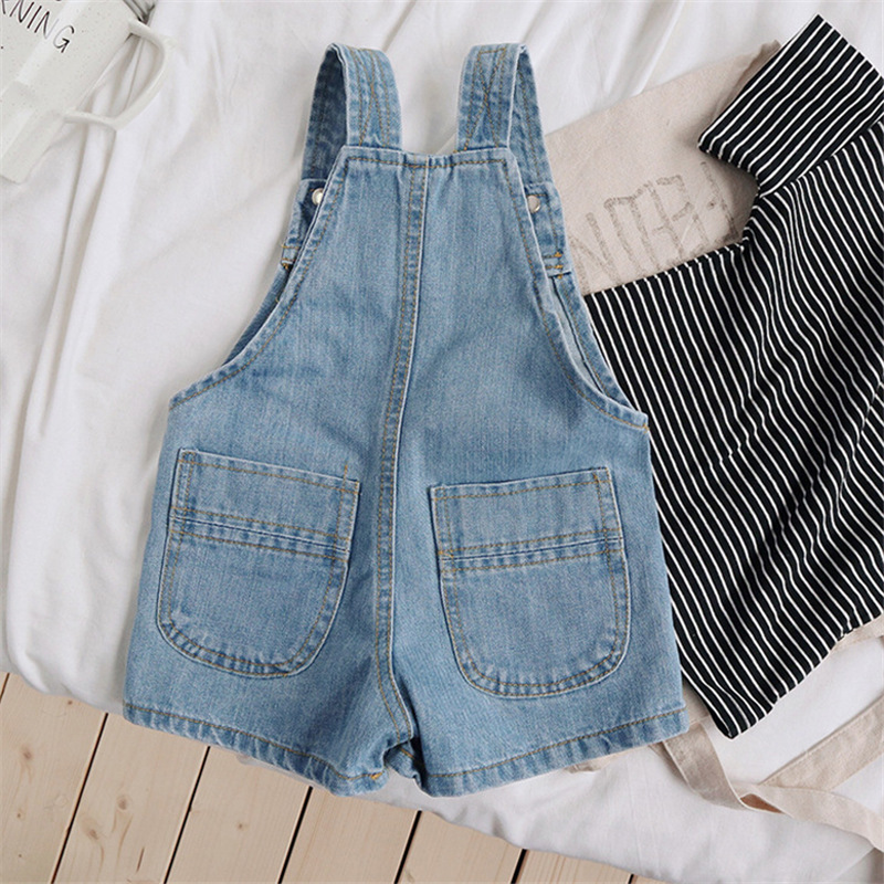 儿童牛仔背带短裤前后口袋夏装韩版男女童时尚裤宝宝洋气2157