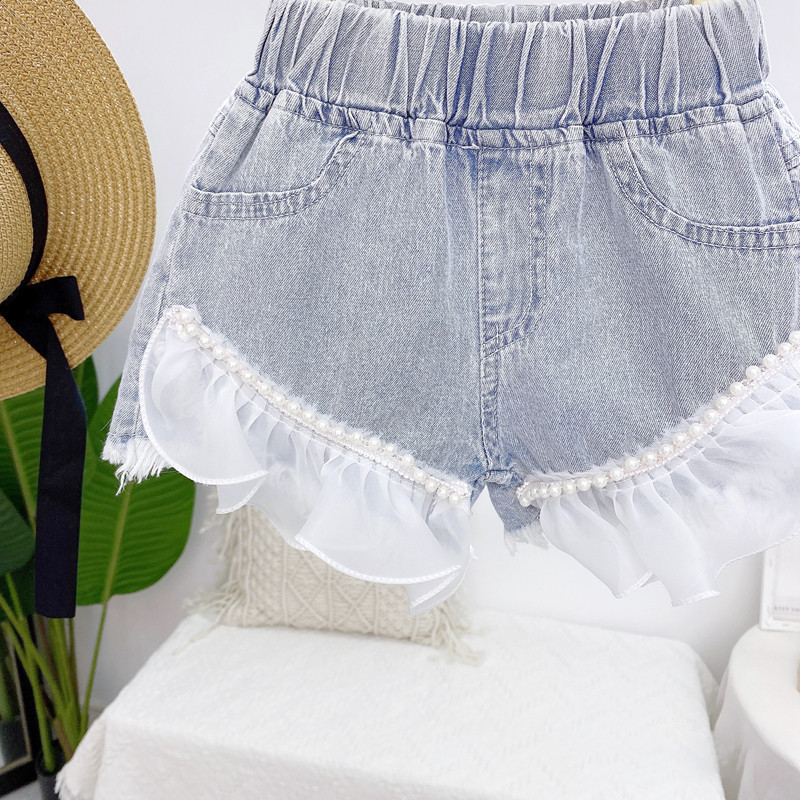 韩版女童夏季新款甜美蕾丝边牛仔裤短裤女宝宝潮童装休闲热裤