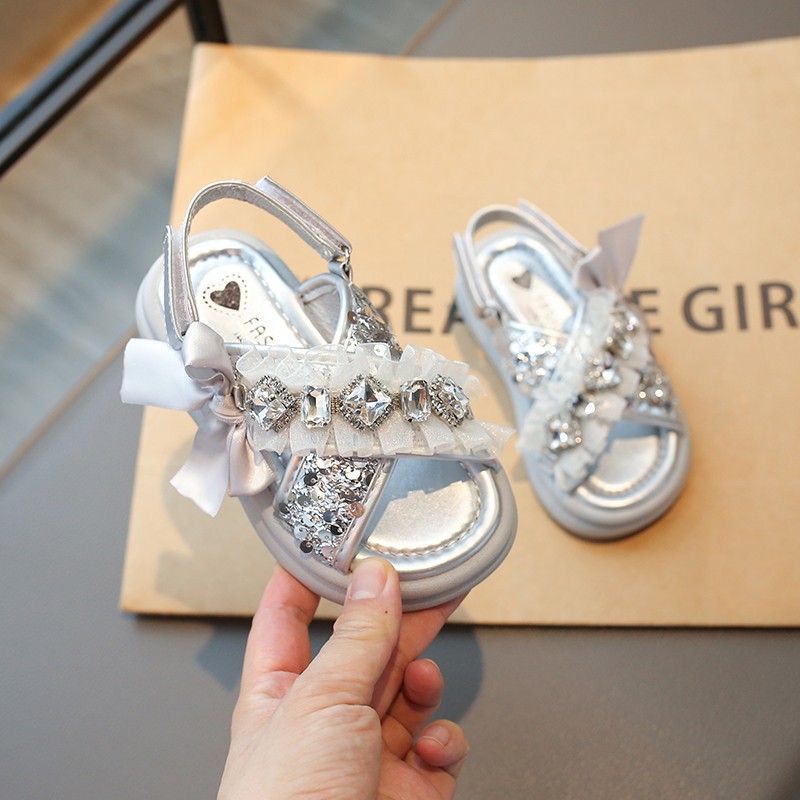 女童公主凉鞋洋气亮片水钻软底中大童沙滩鞋夏季露趾凉拖一鞋二穿