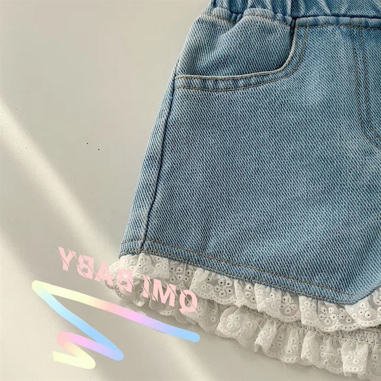 女童夏装新款韩版儿童可爱甜美舒适软牛仔短裤蕾丝花边短裤