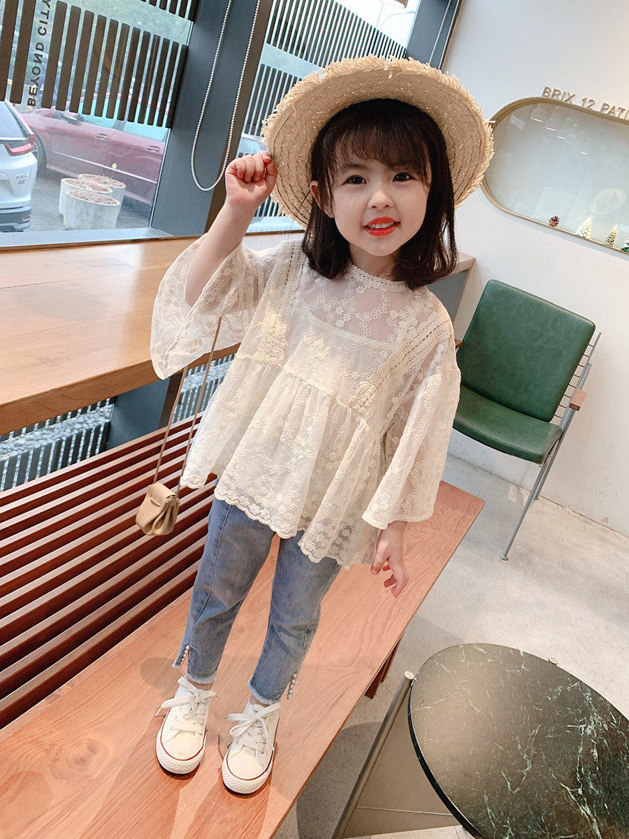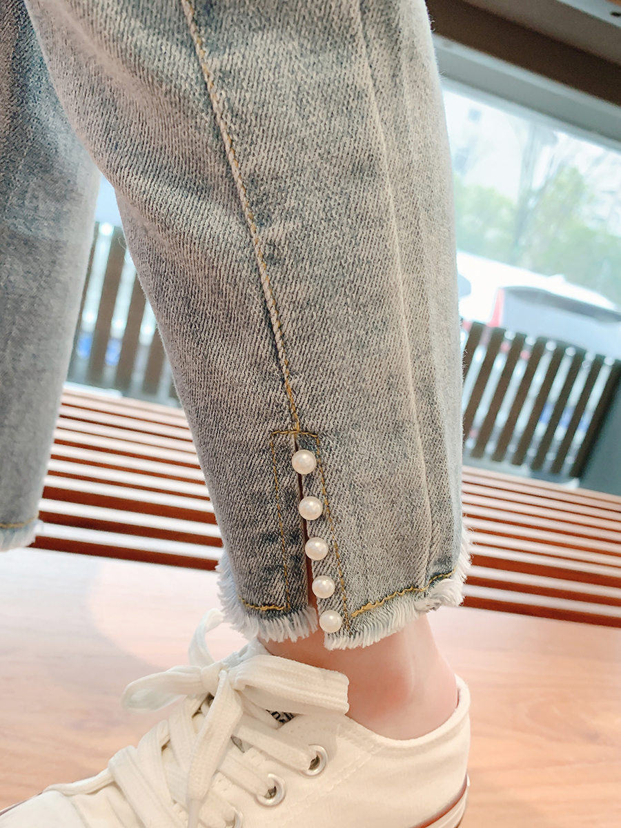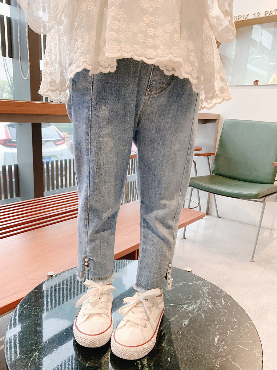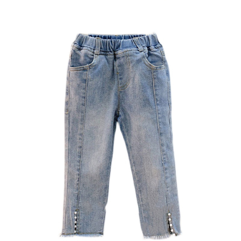 女童韩版珍珠牛仔裤202夏季新款小童女宝宝薄款侧开叉毛边裤Q2118