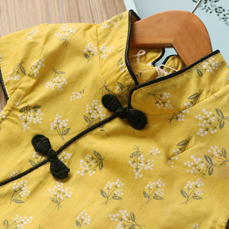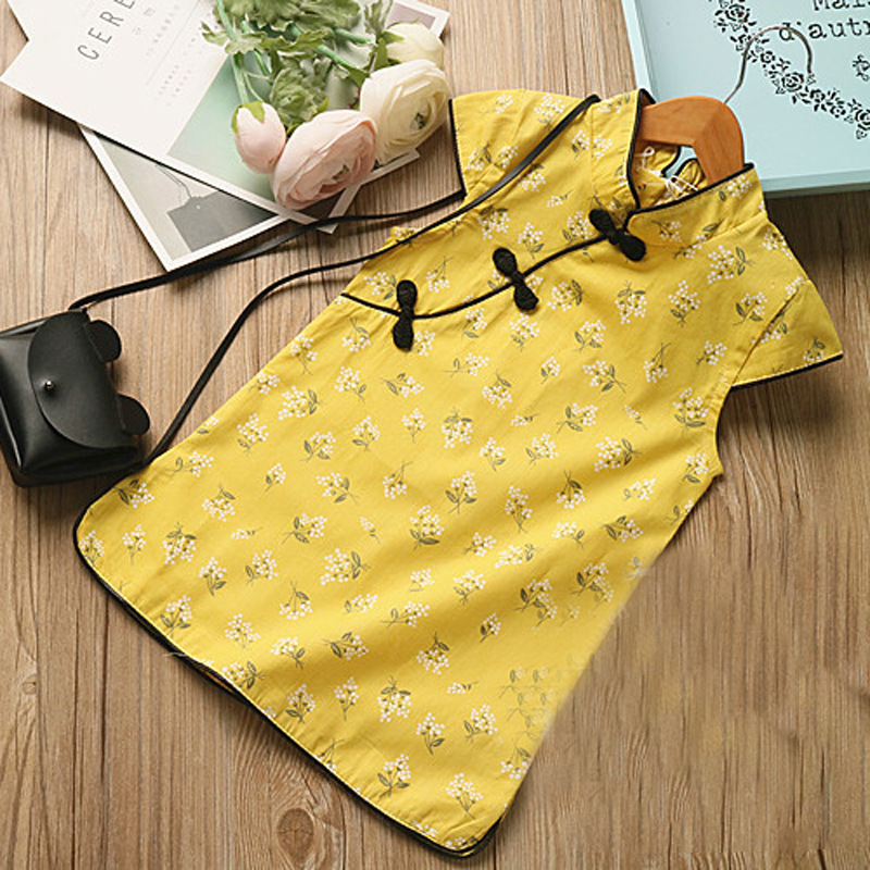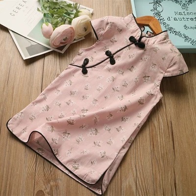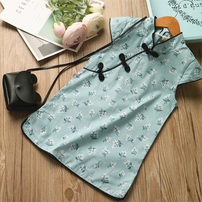 夏季新款民族风女童碎花盘扣旗袍连衣裙中小童A字裙