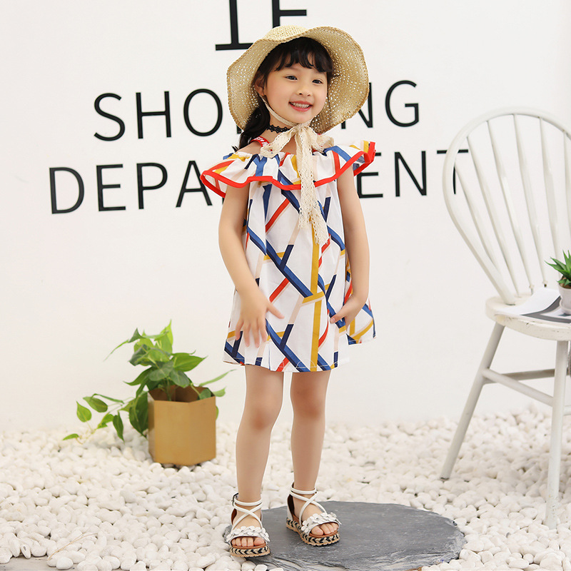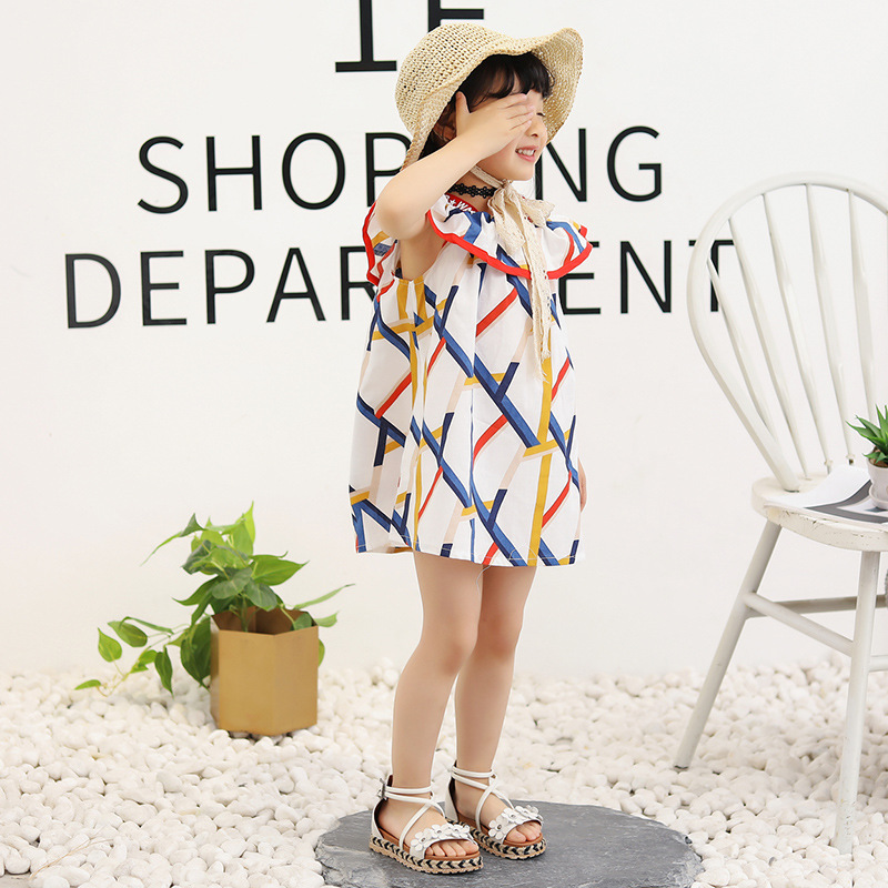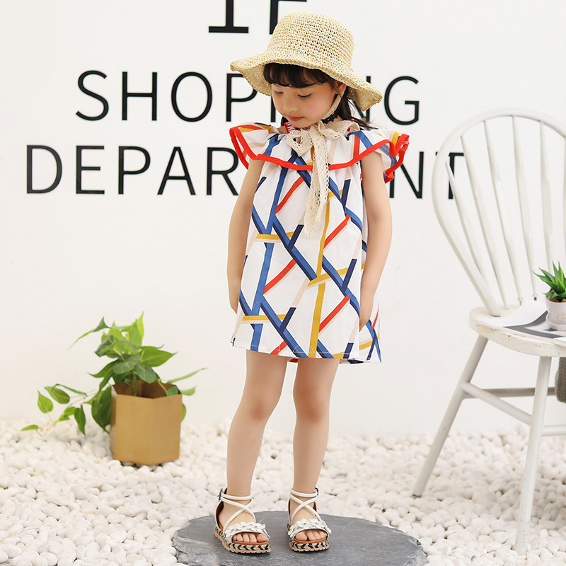 童装连衣裙夏新款儿童公主裙几何图案中小童吊带裙
