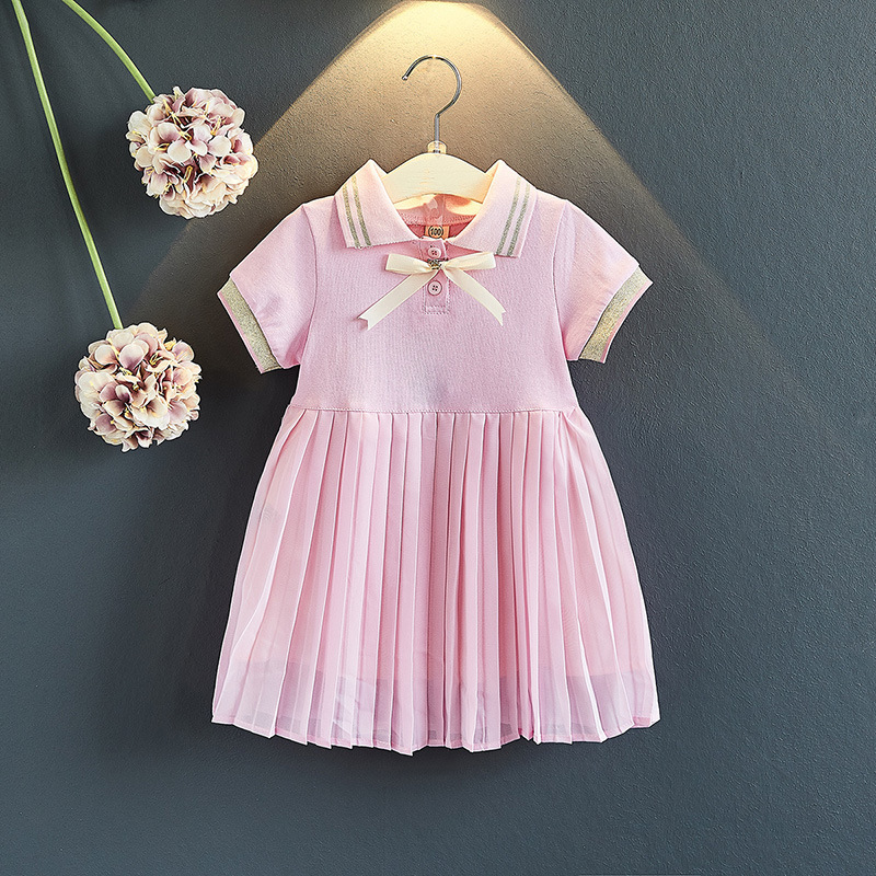 儿童裙子夏装百褶公主裙学院风中小童polo裙女童连衣裙可