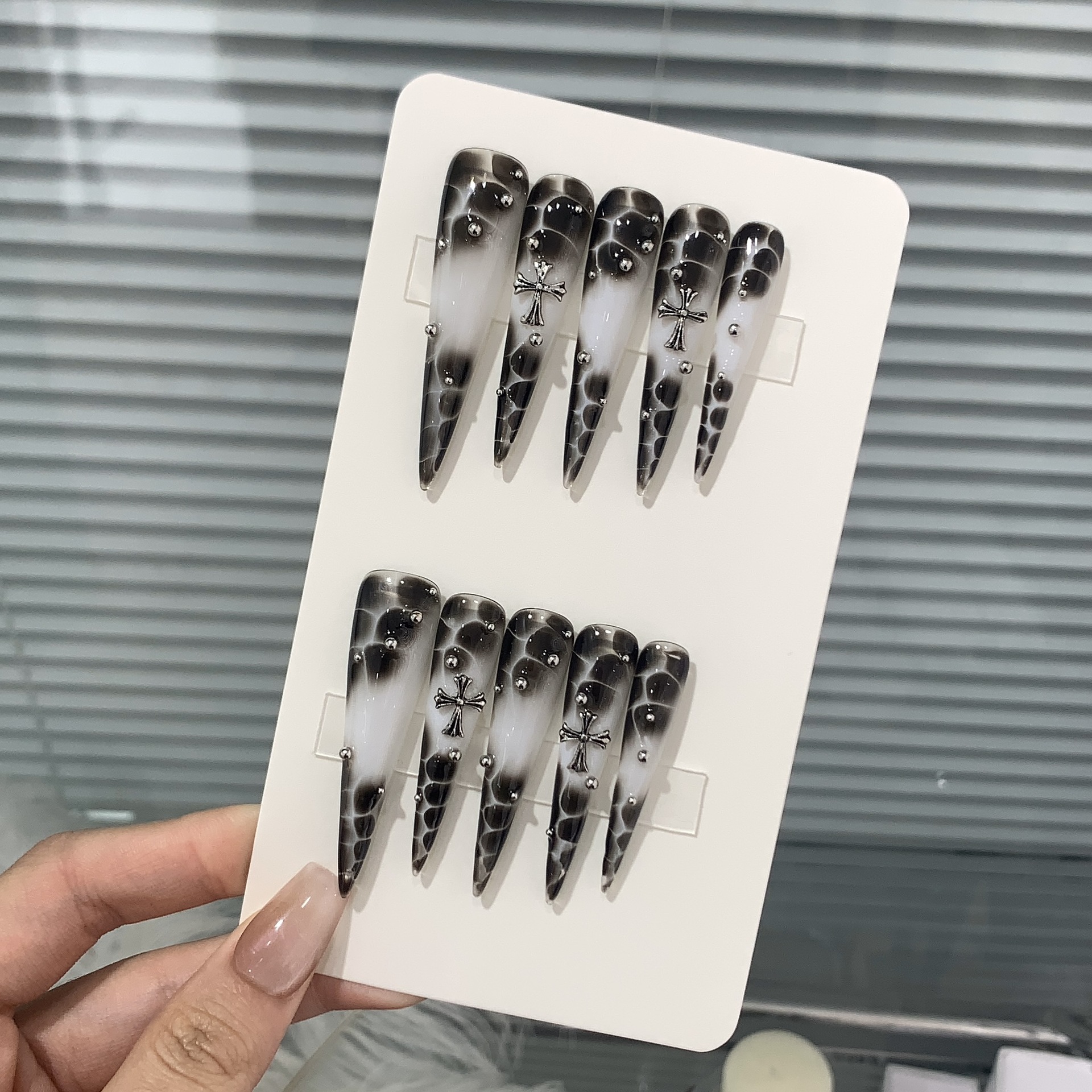 欧美穿戴甲【Y】欧美甜酷辣妹风合金十字架简约钢珠黑格利贴片穿