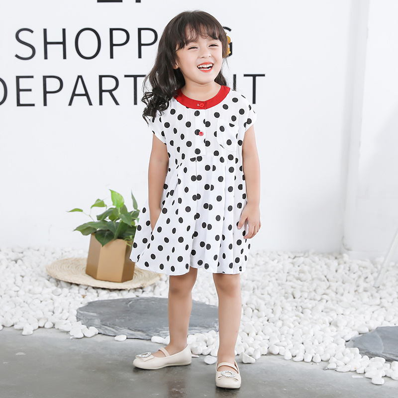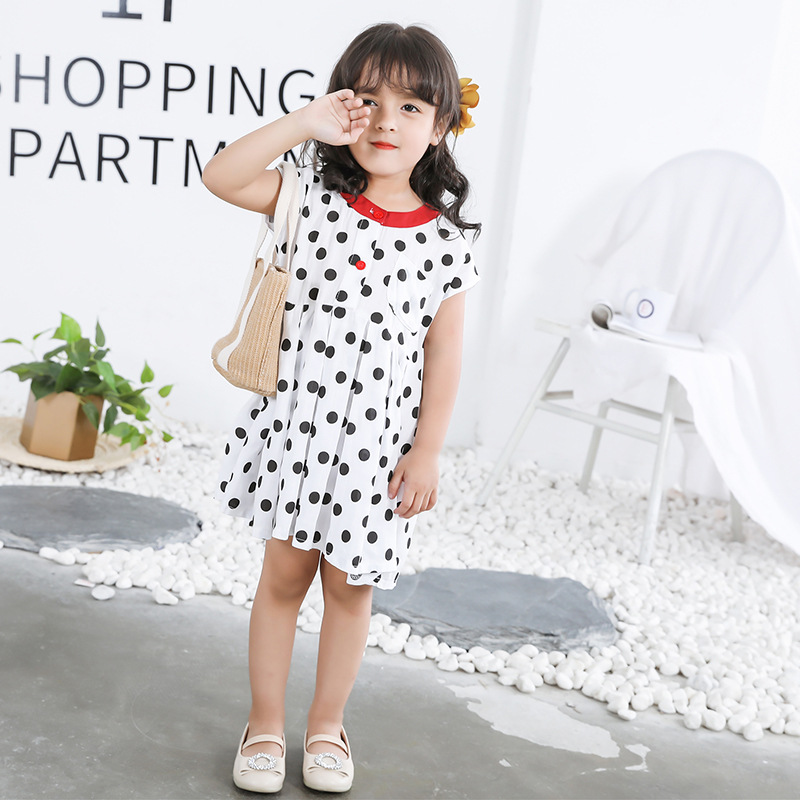 波点女童连衣裙新款童装短袖公主裙夏季儿童吊带裙子
