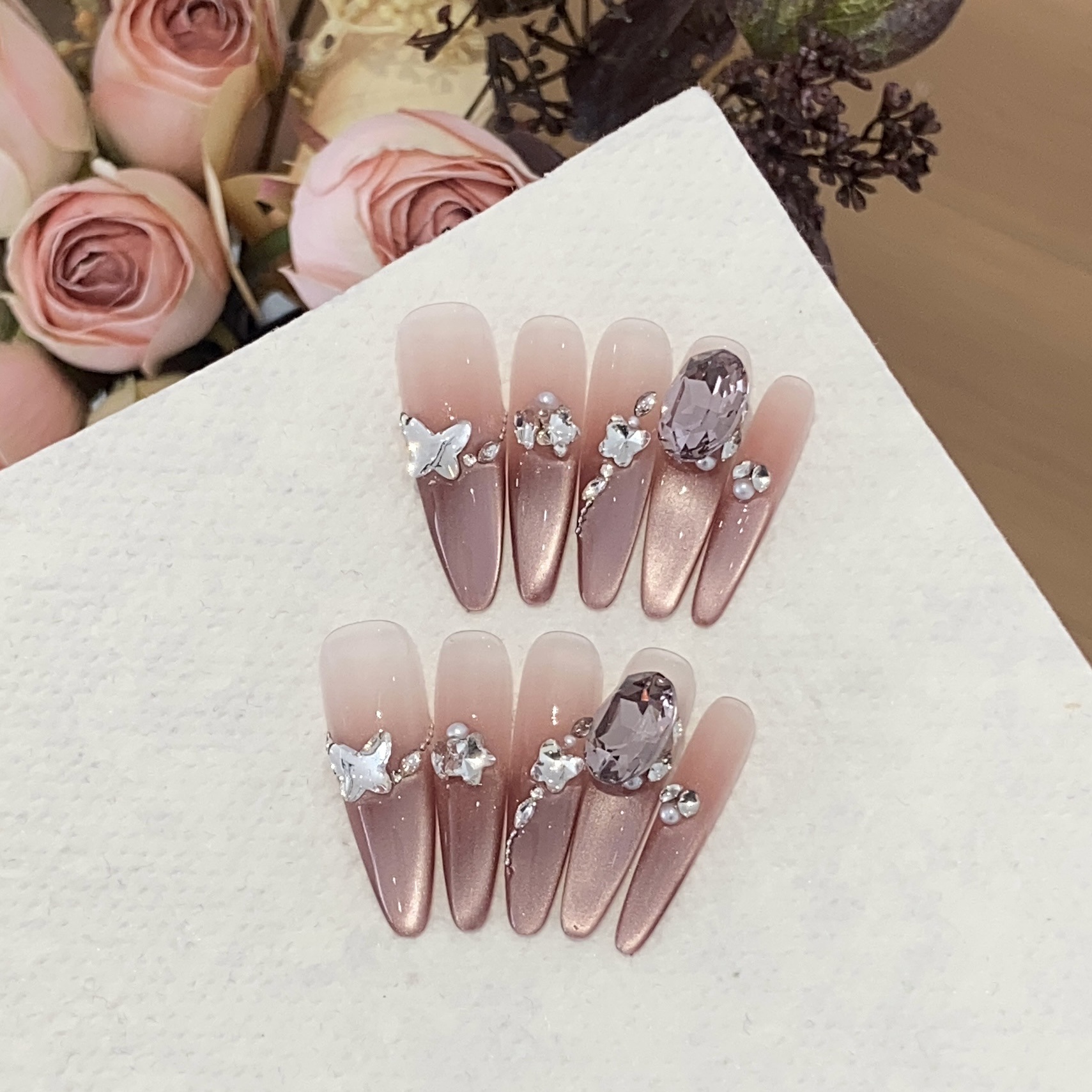 一只顾美甲 冰透裸色紫色渐变侧光猫眼精品K9九紫离火穿戴甲片