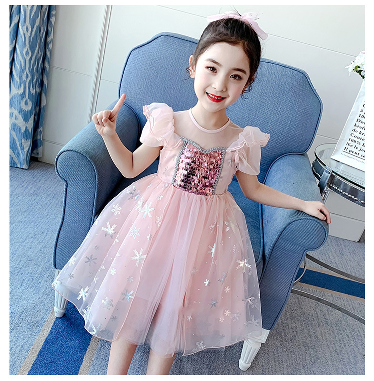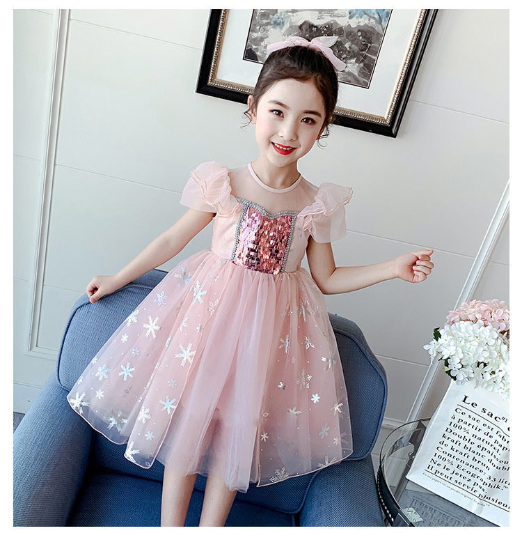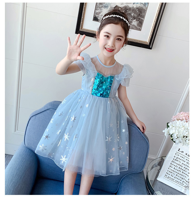 女童连衣裙夏季新款冰雪奇缘公主裙艾莎女孩裙儿童蓬蓬纱506