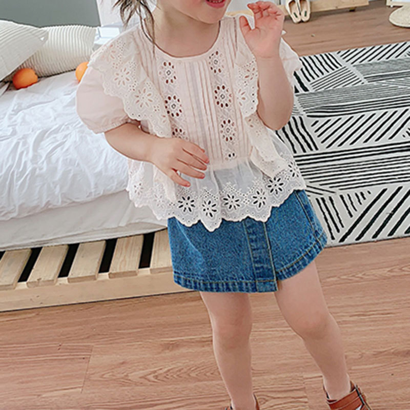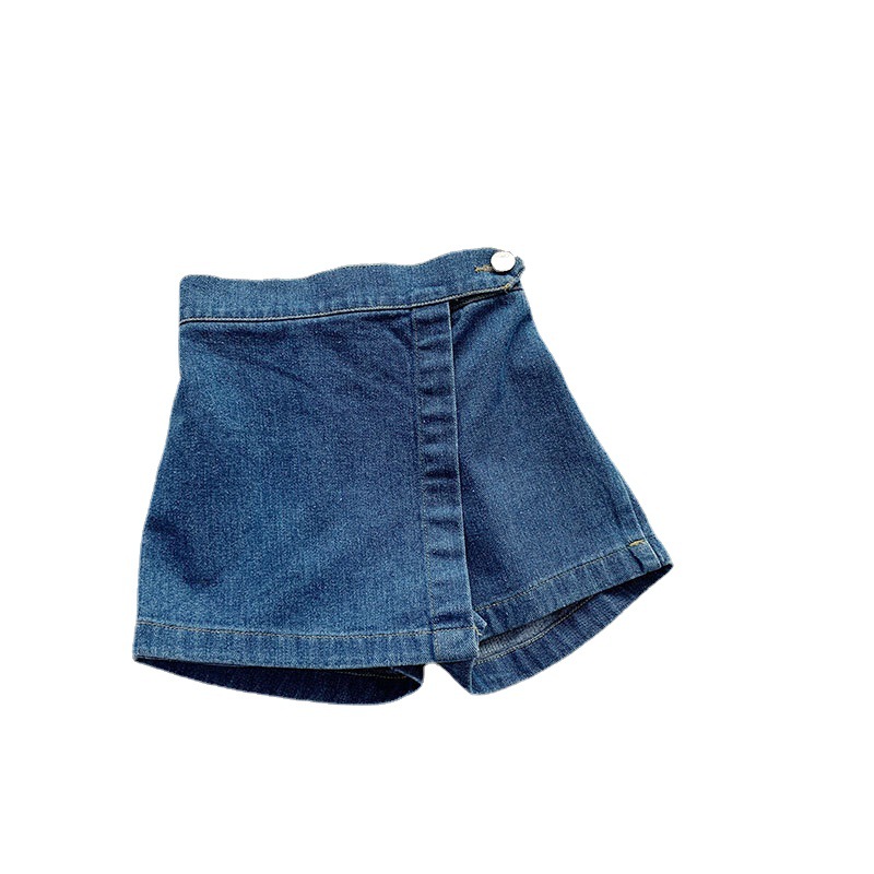 夏季新款儿童韩版童装中小女童裤子一件代发假两件牛仔短裤