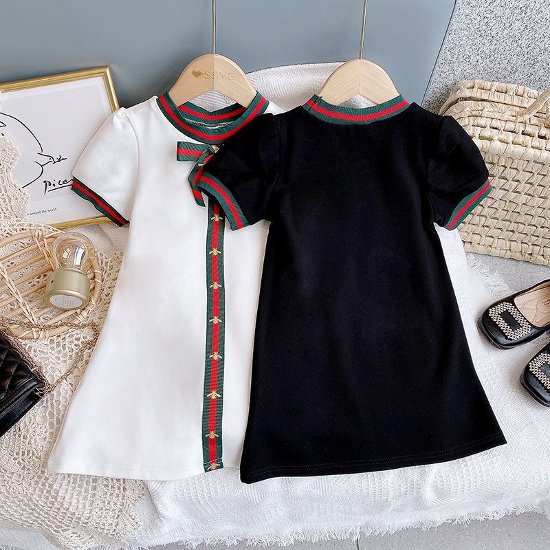 韩版女童圆领蝴蝶结连衣裙夏季新款女宝宝蜜蜂织带公主裙773