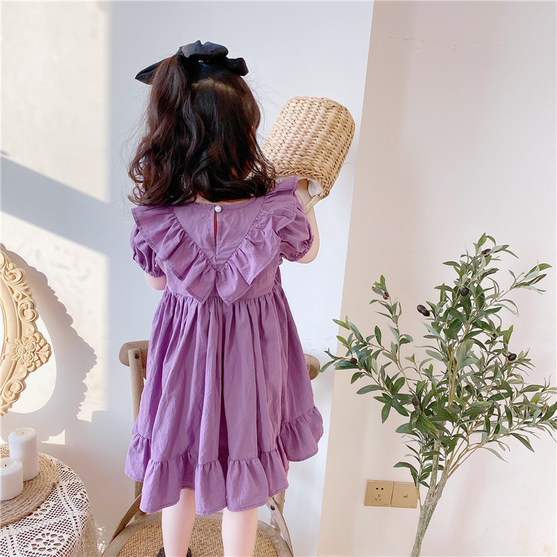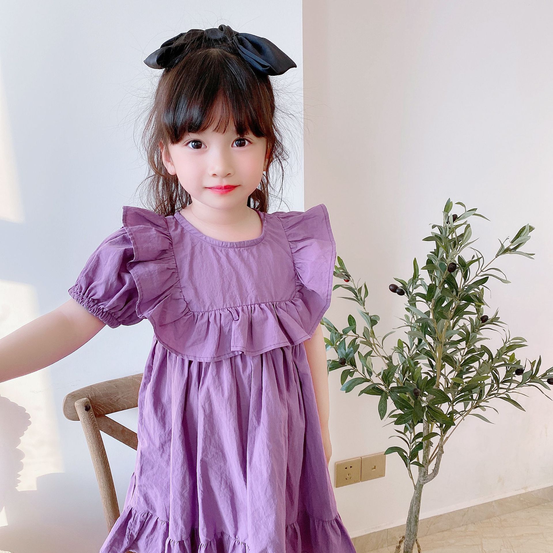 女童甜美紫色连衣裙夏季童装新款儿童洋气荷叶边公主裙W010