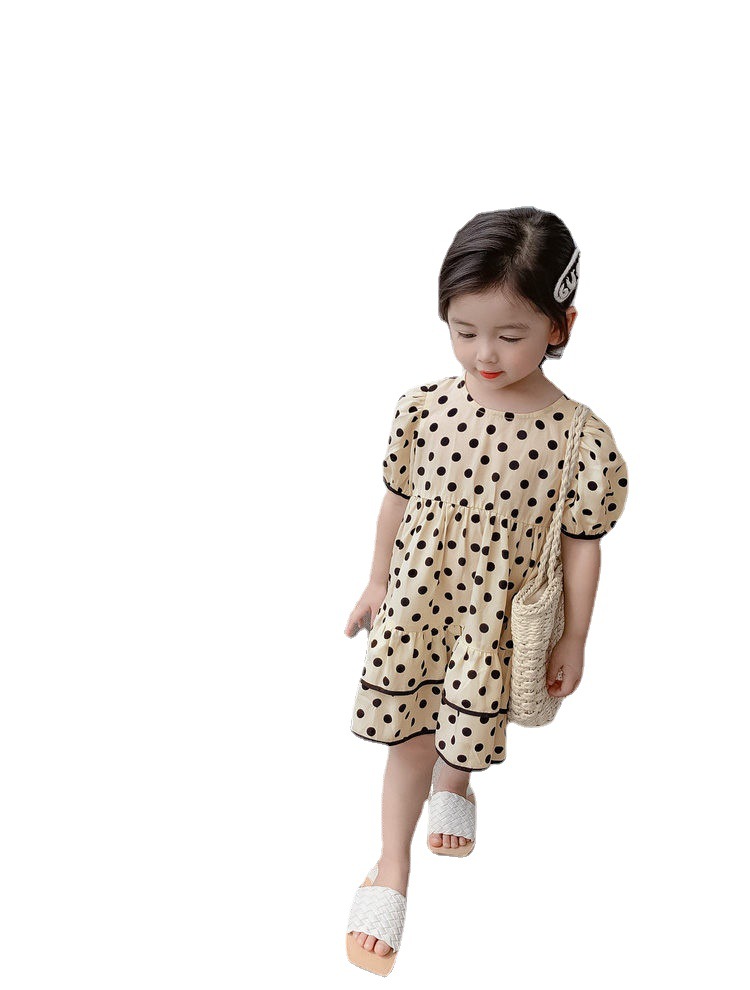女童裙子韩版夏款新款儿童短袖波点公主裙泡泡袖连衣裙775