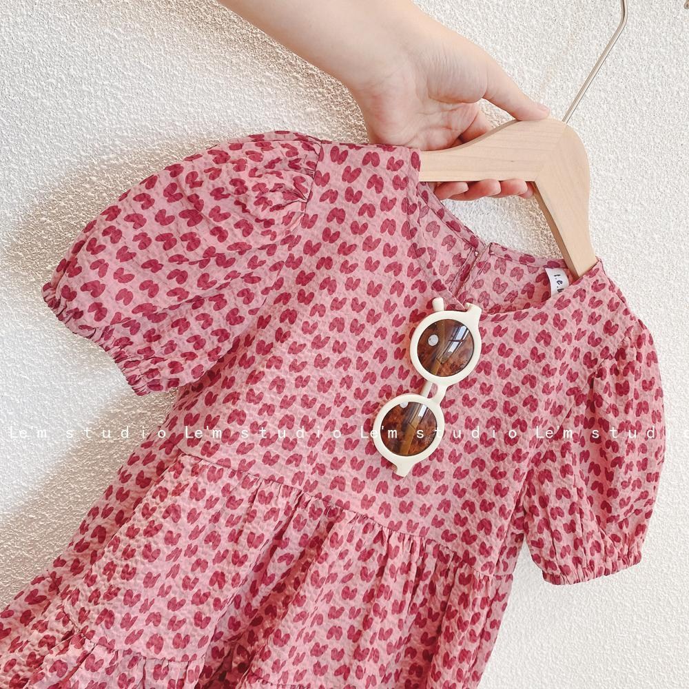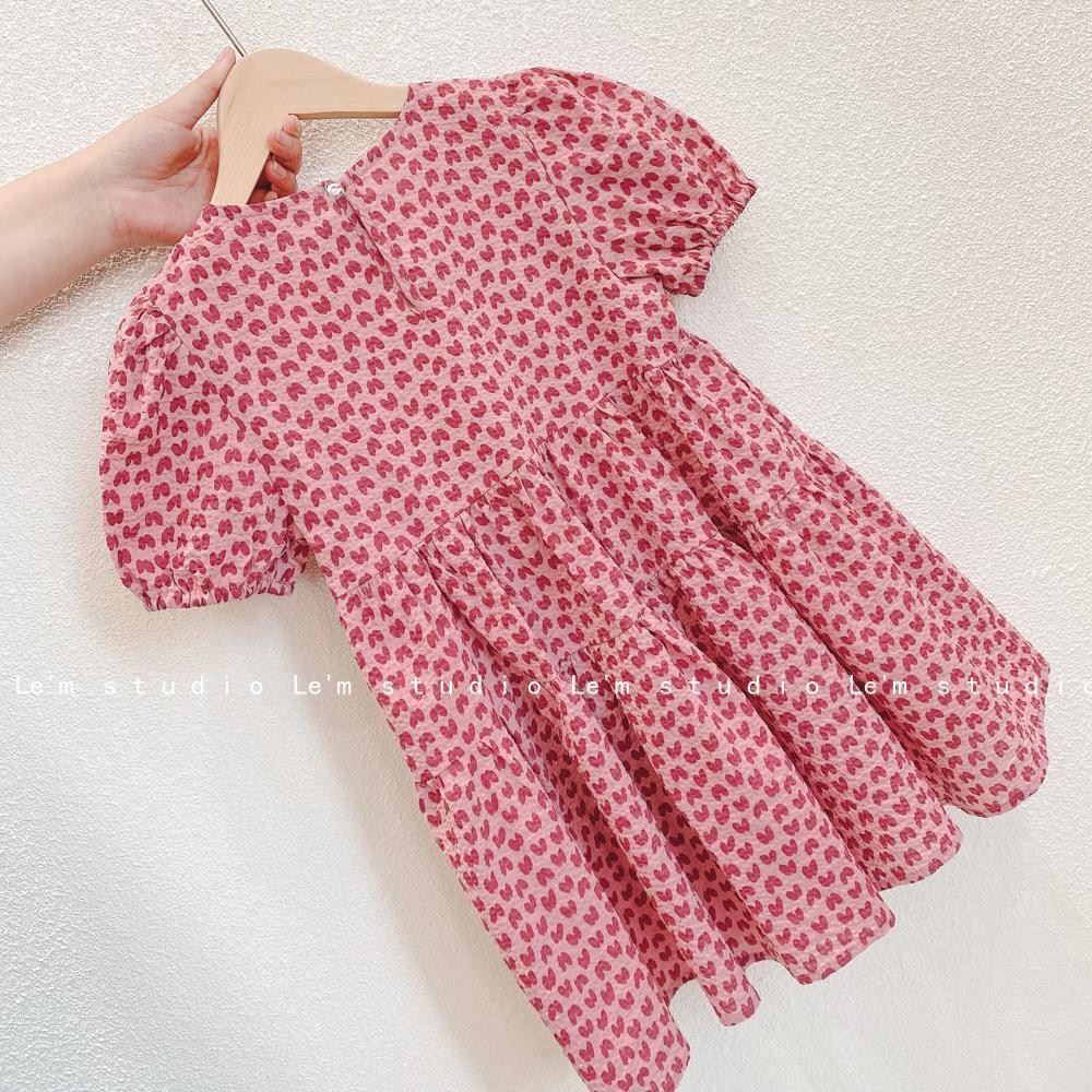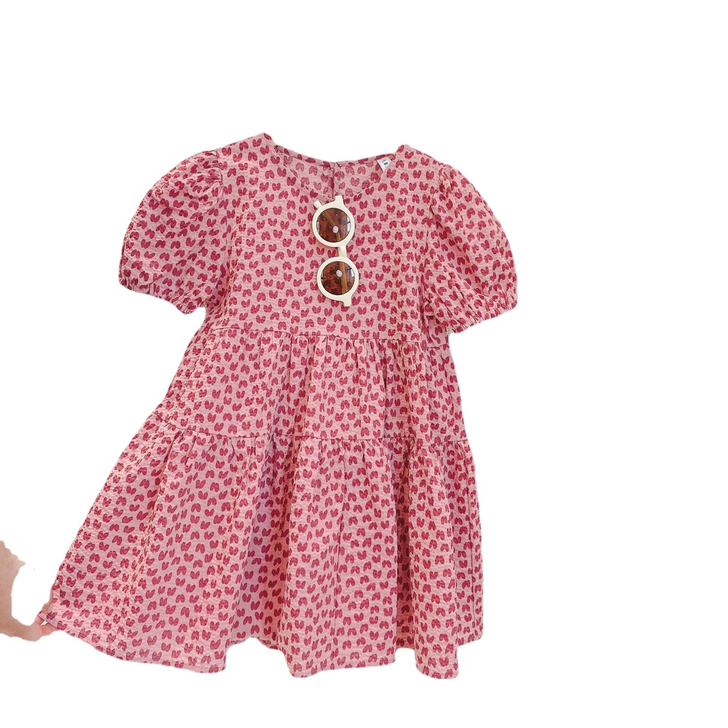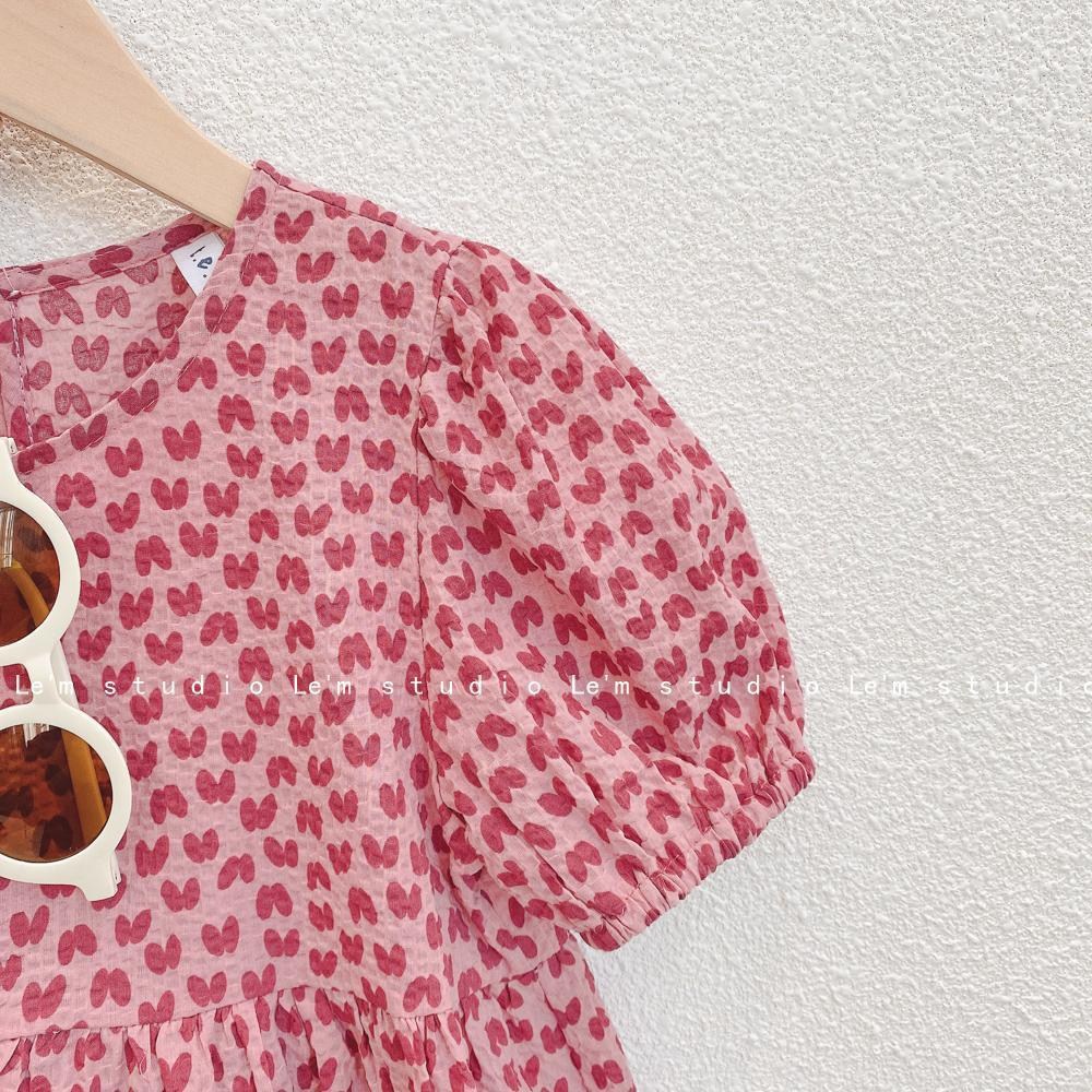 洋气童装夏季新款女童时髦碎花压皱设计满印爱心短袖裙1155