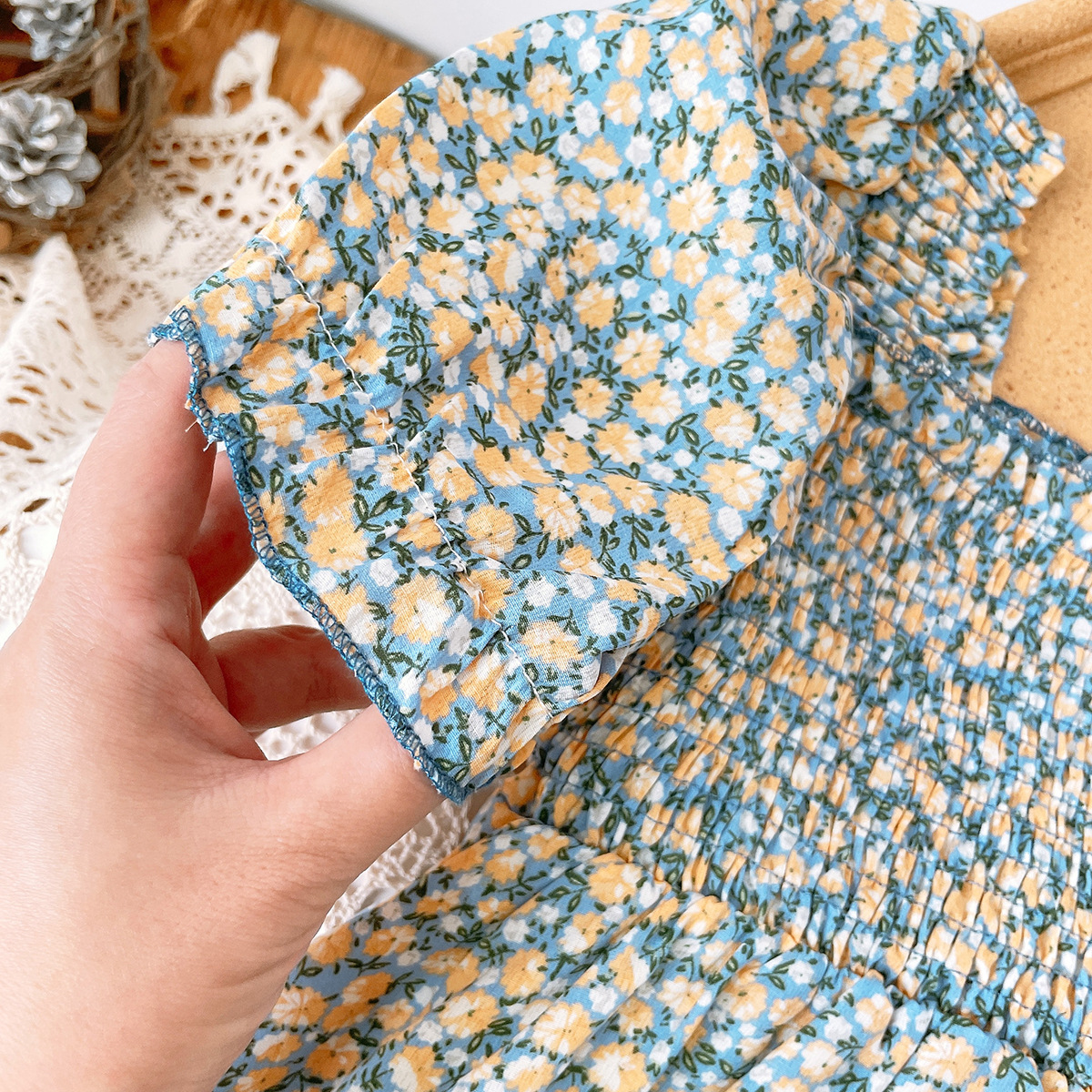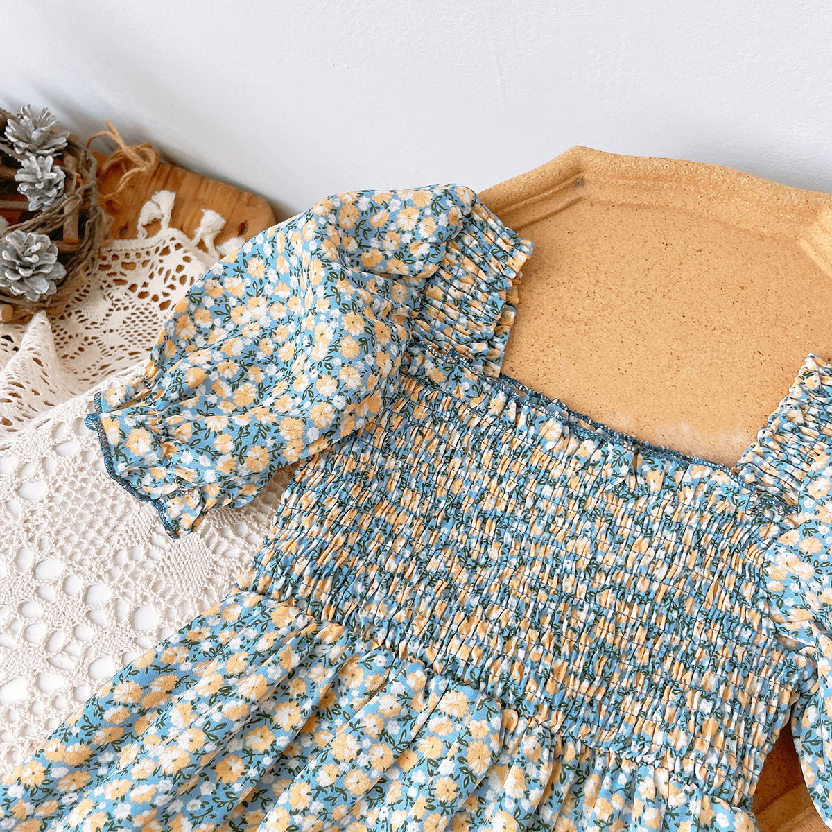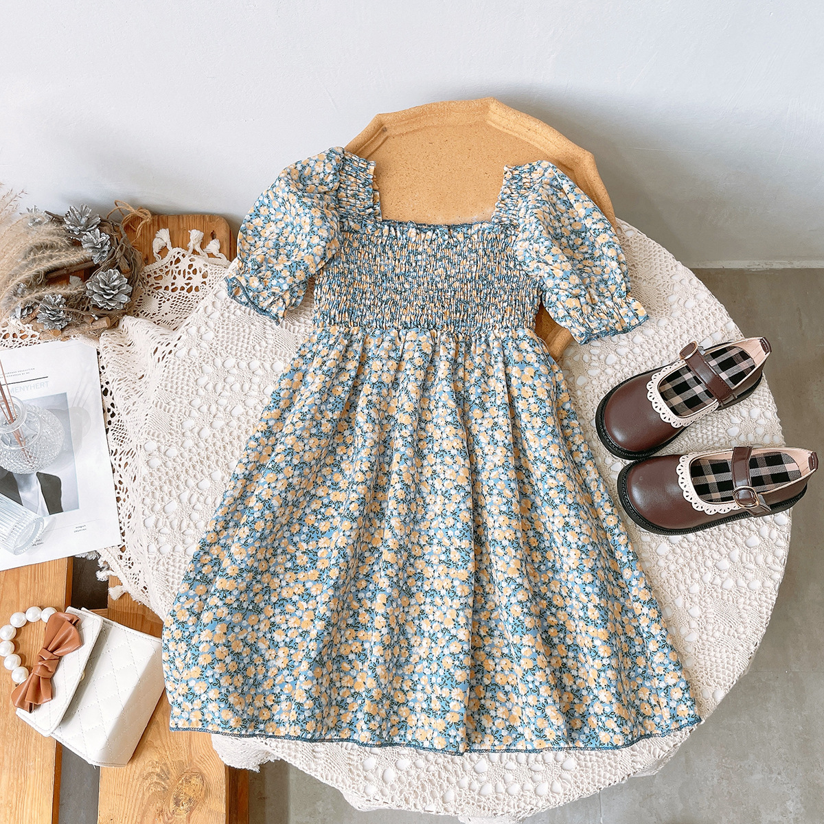 女童夏装新款儿童洋气碎花公主裙宝宝韩版泡泡袖裙夏季1127