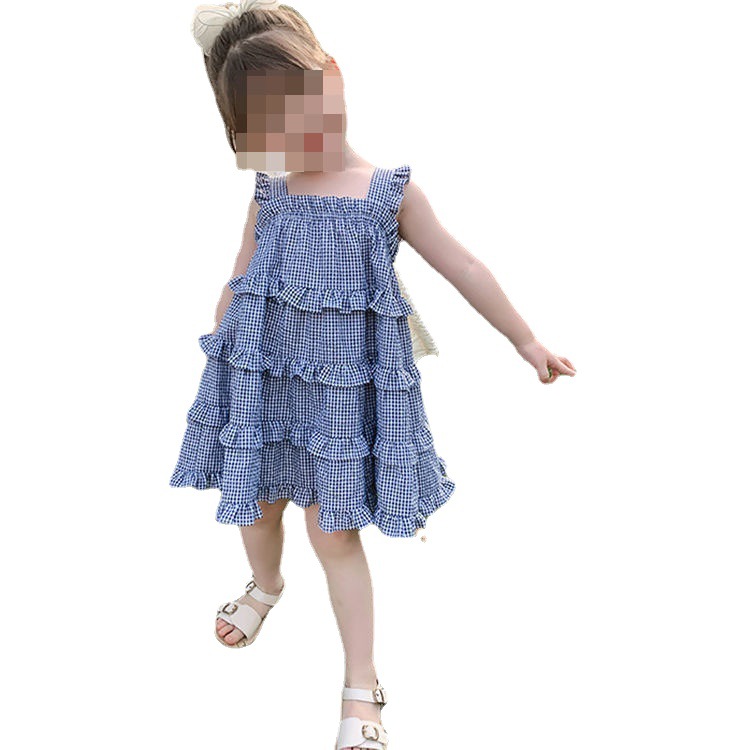 新款女童夏装格子连衣裙蛋糕裙女宝宝裙子夏季童装吊带裙1129