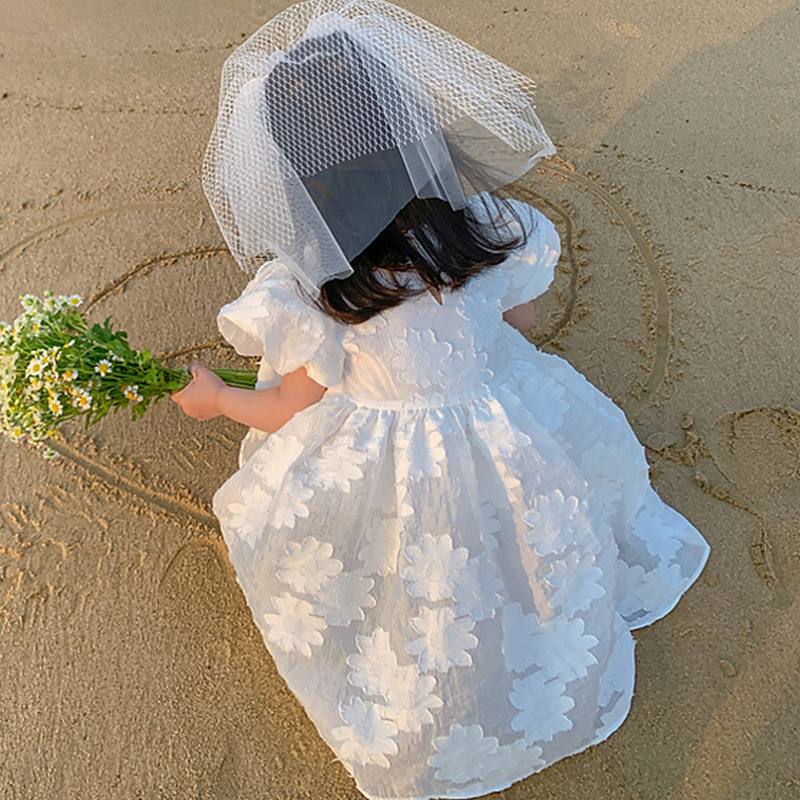 女童裙子大花泡泡袖甜美连衣裙公主裙夏装新款外贸童装-1136