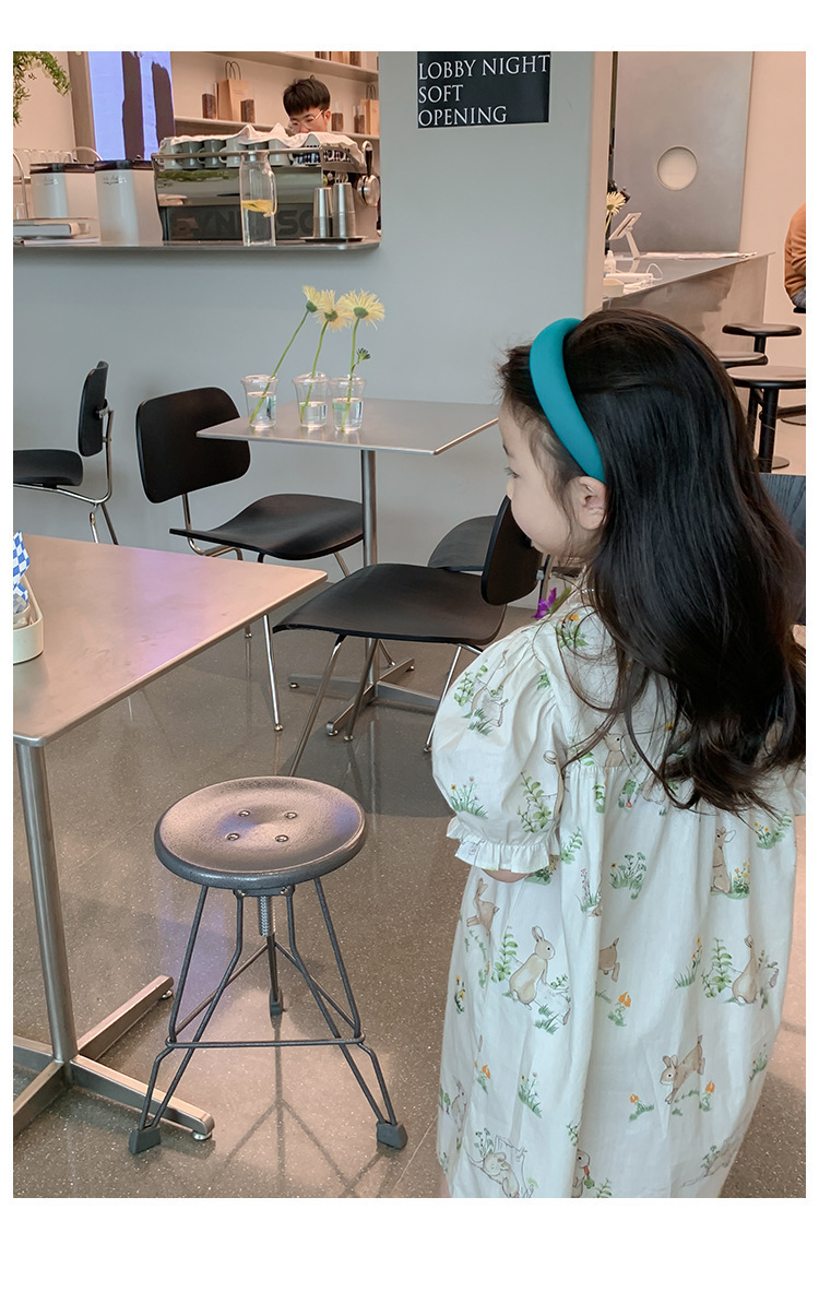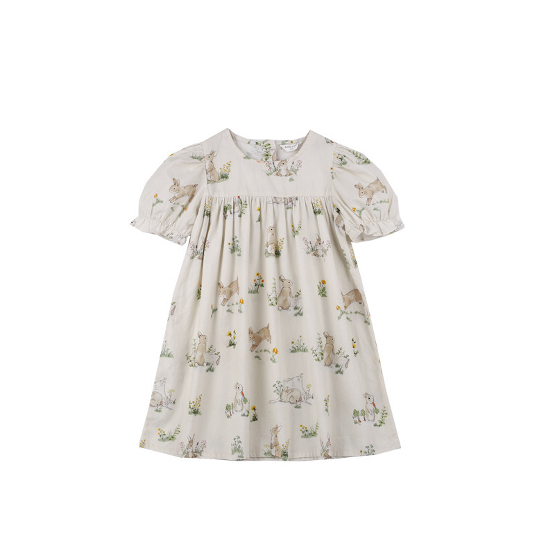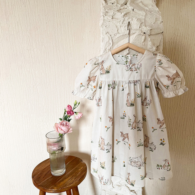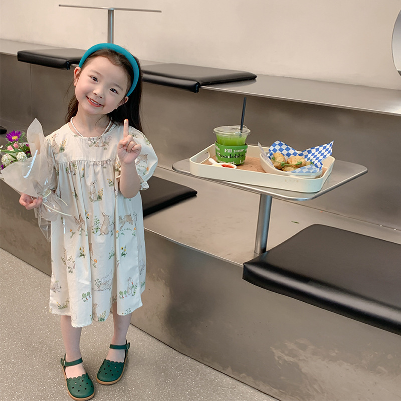 女童泡泡袖连衣裙夏季新款韩国童装儿童小兔印花棉童裙Q2182