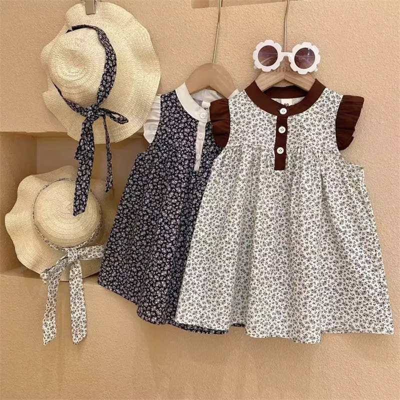 女童碎花连衣裙高级感夏季新款韩版洋气女宝无袖公主裙Q2183