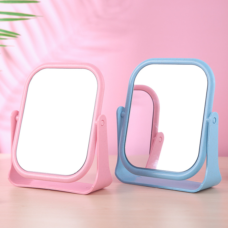 小麦秸秆镜子台式家用梳妆镜浴室卧室高清桌面化妆镜