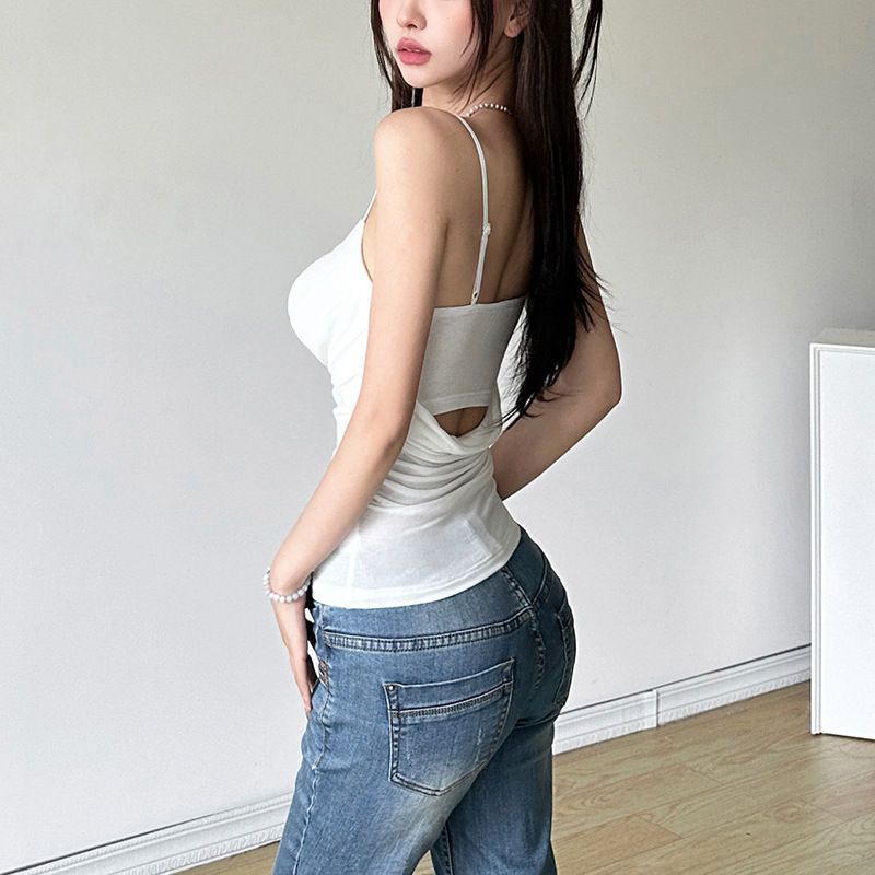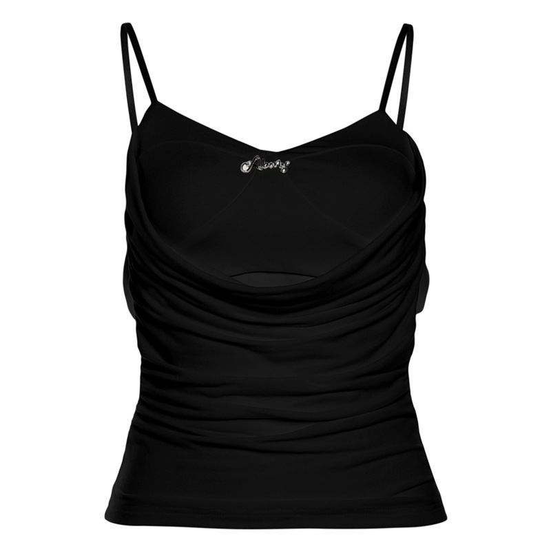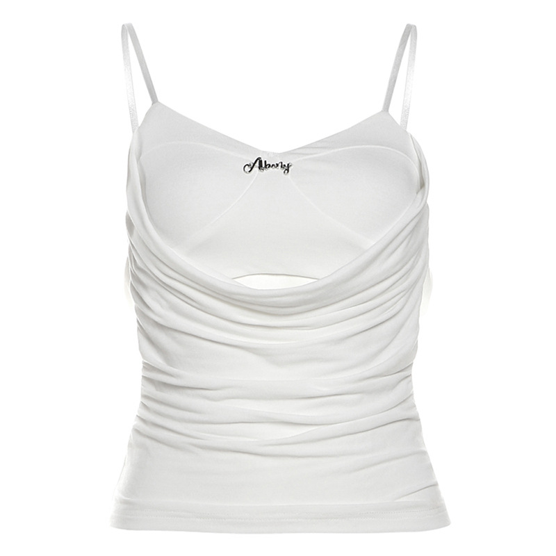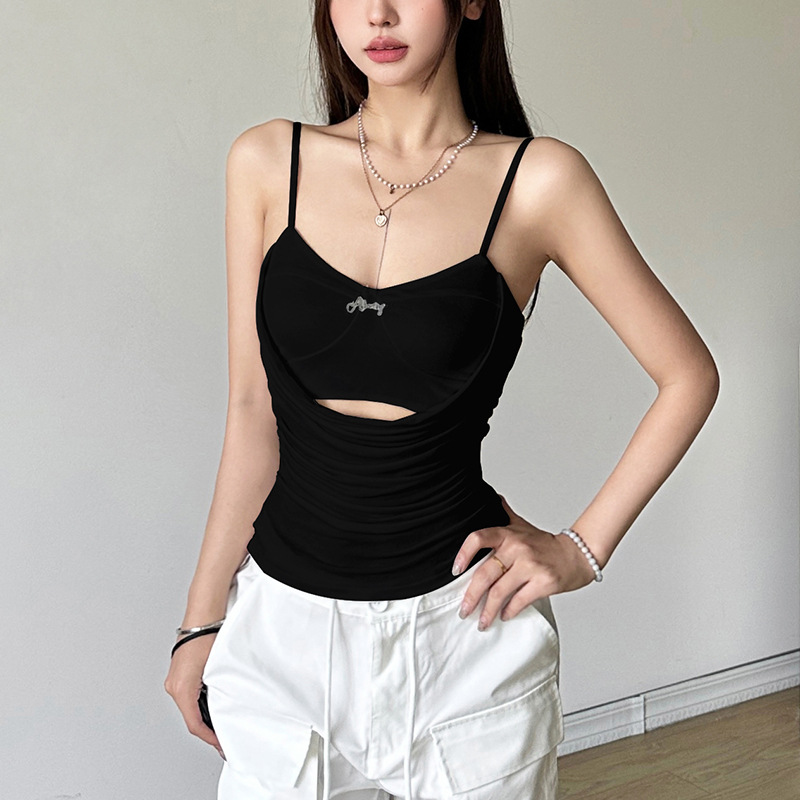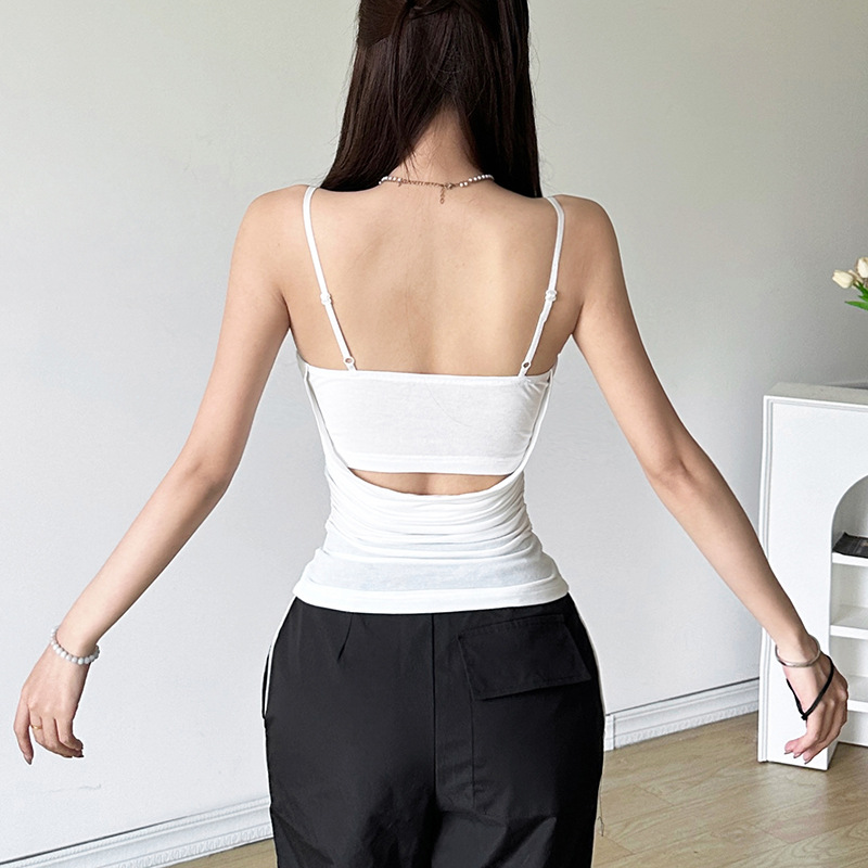 欧美风夏季新款女装纯欲风拼接假两件镂空修身吊带小背心