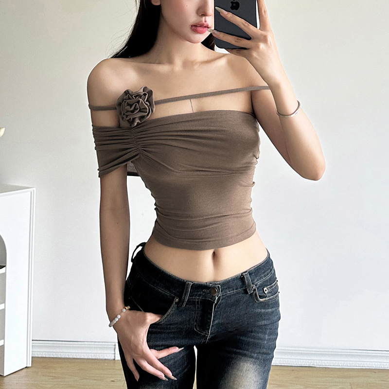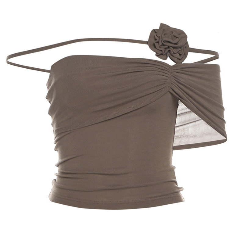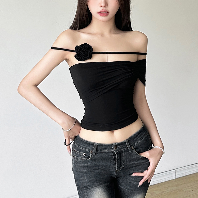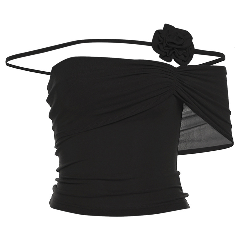 欧美风夏季新款女装立体花装饰裹胸修身收腰露脐辣妹背心