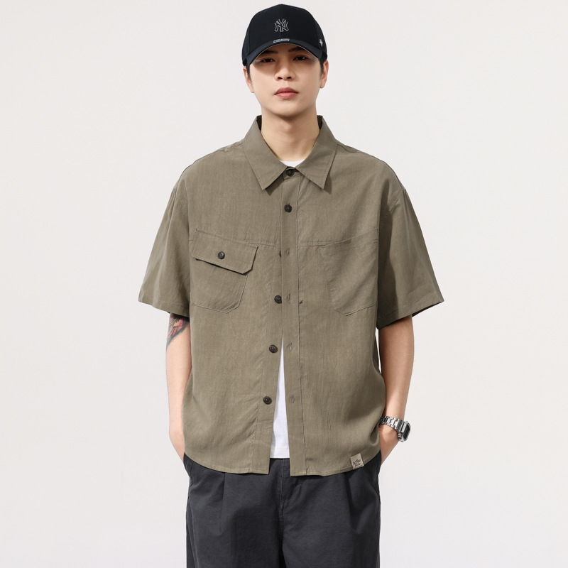 120g莱赛尔短袖衬衫男夏季薄款美式复古宽松大码衬衣休闲开衫外套