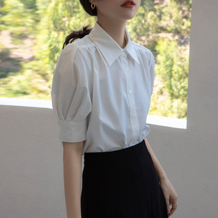 法式气质白色衬衫女25年夏季新款设计感小众通勤衬衣短袖上衣