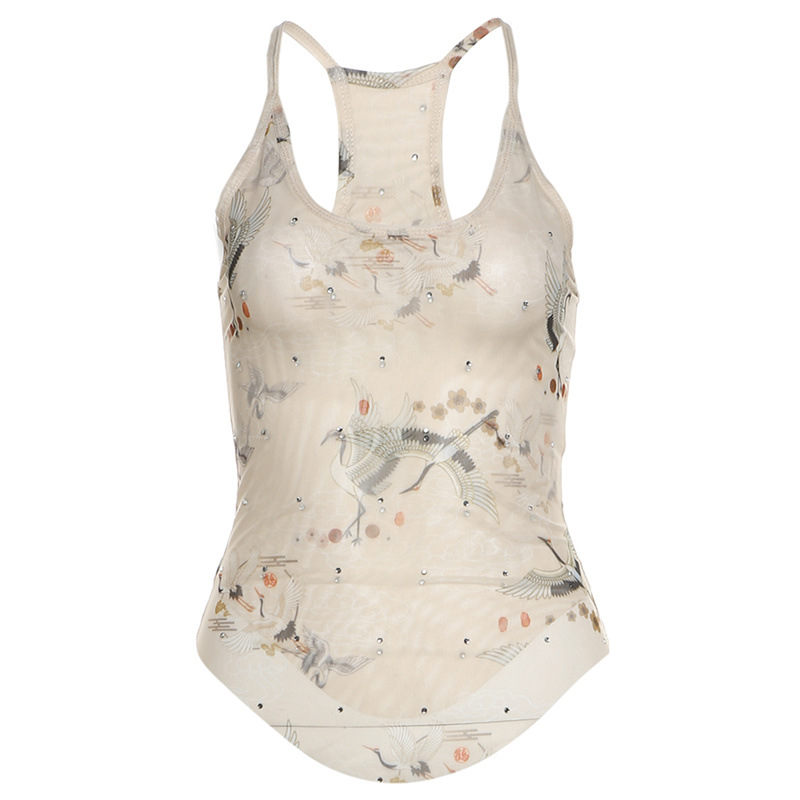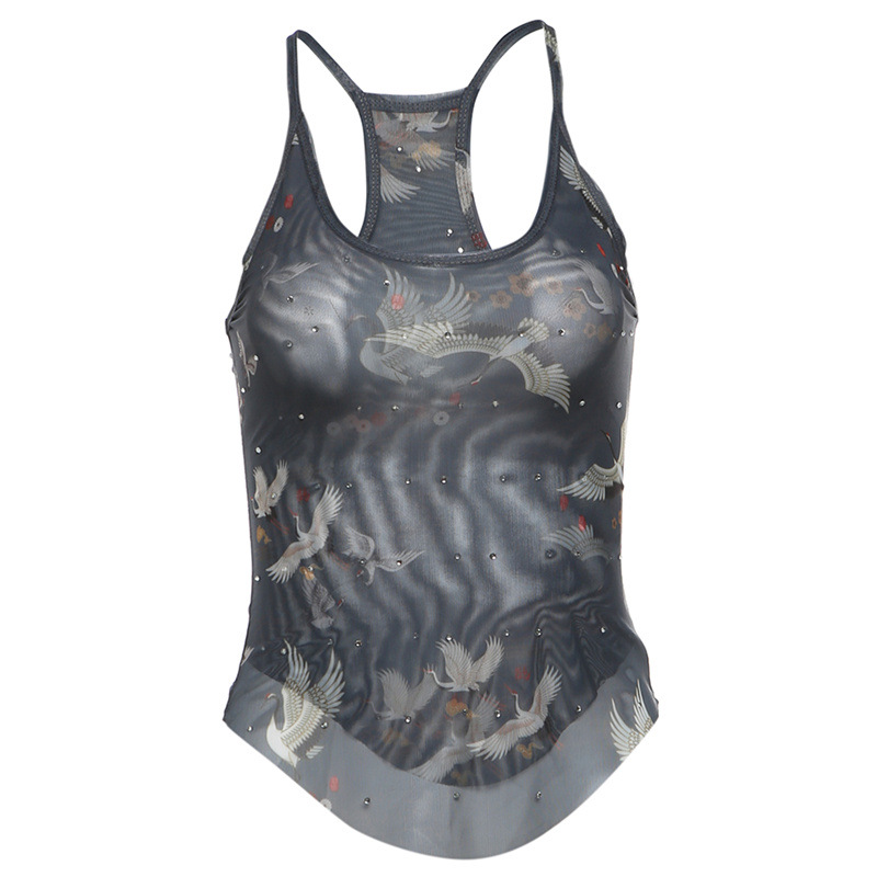 欧美风夏季新款女装高级感印花吊带时尚露背修身小背心