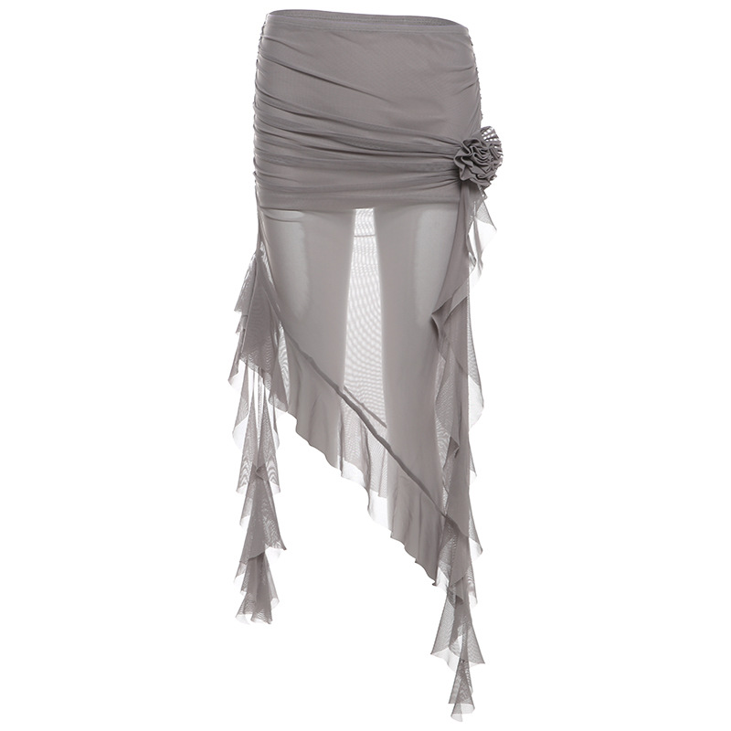 欧美风夏季新款女装网纱包臀立体花修身不规则边半身裙